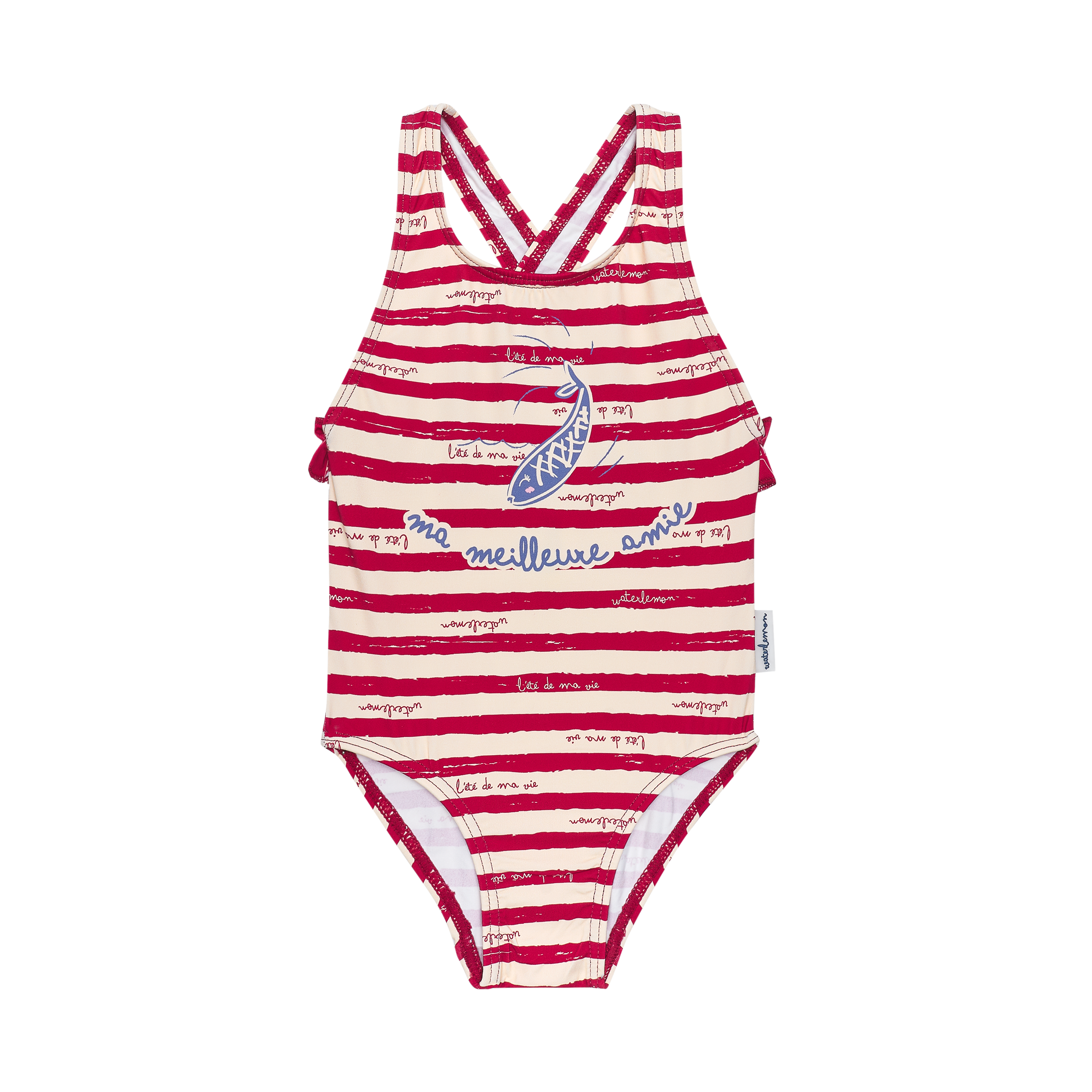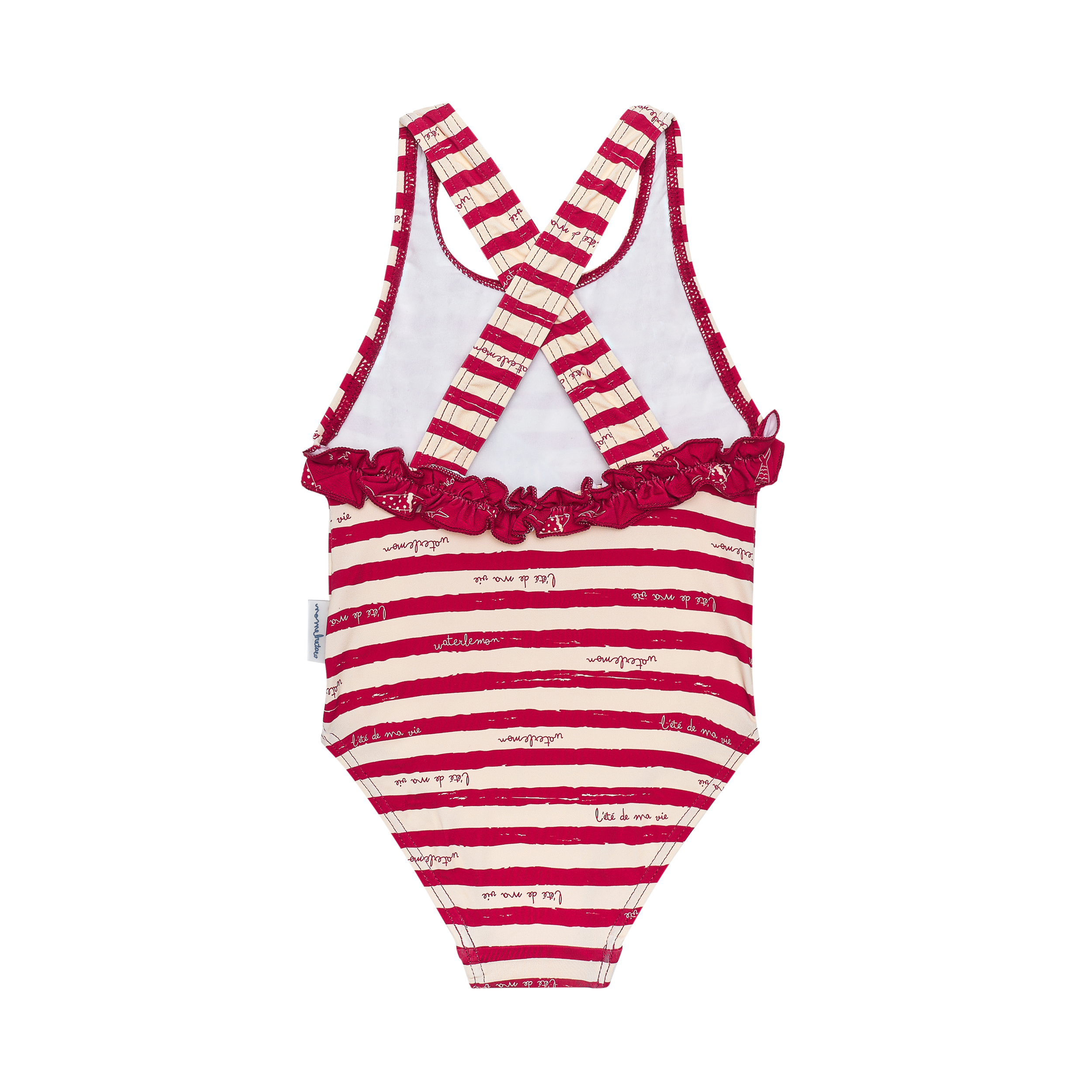 BAÑADOR ESCOTE REDONDO, TIRANTES CRUZADOS EN LA ESPALDA Y VOLANTE EN EL TRASERO.