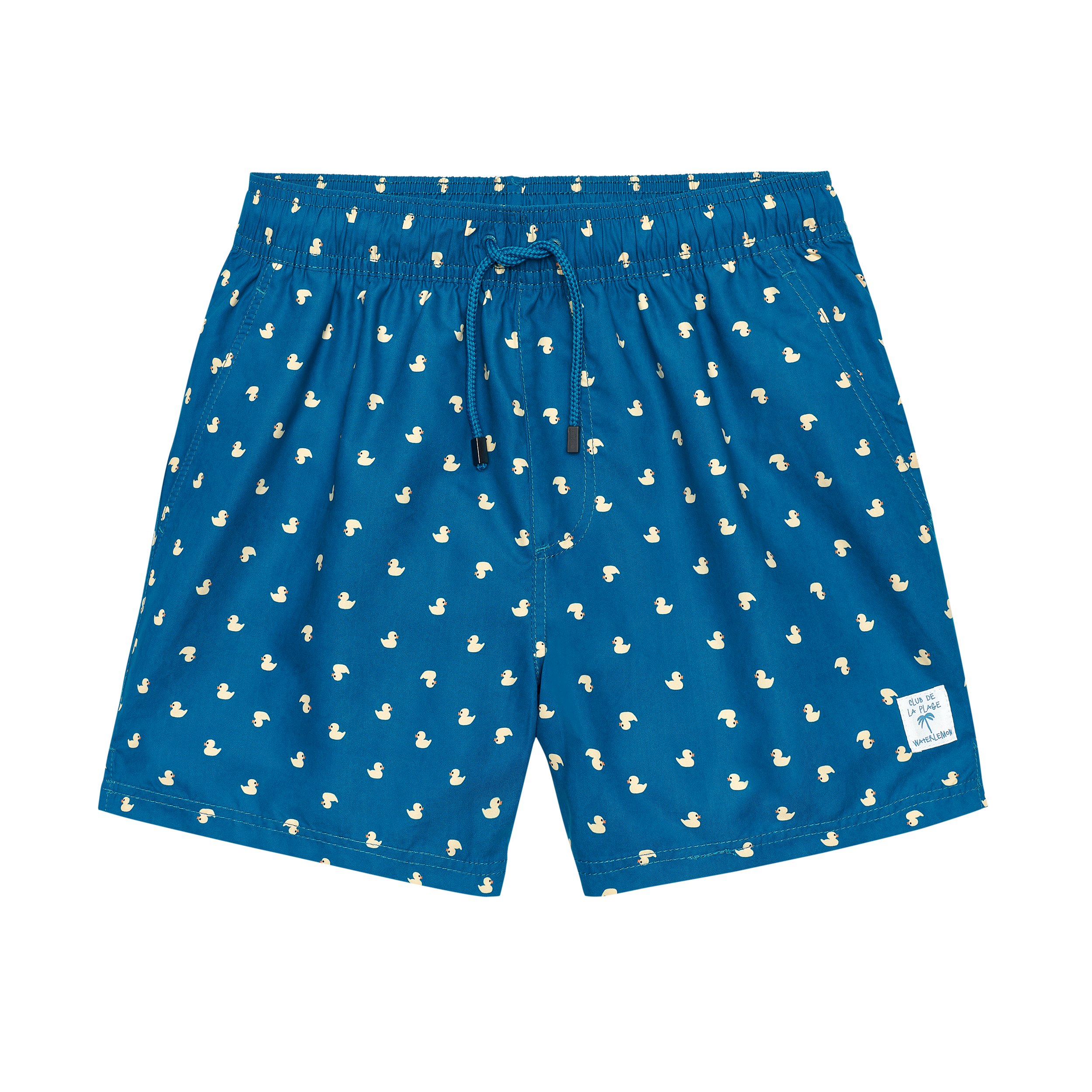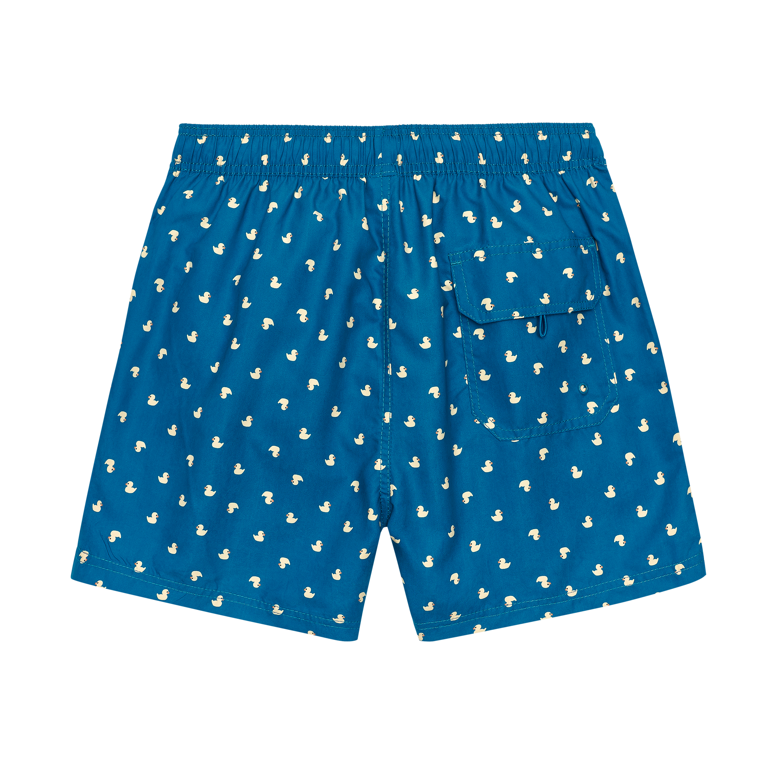 ESTAMPADO DE PATITOS CON FONDO COLOR AZUL PETRÓLEO.