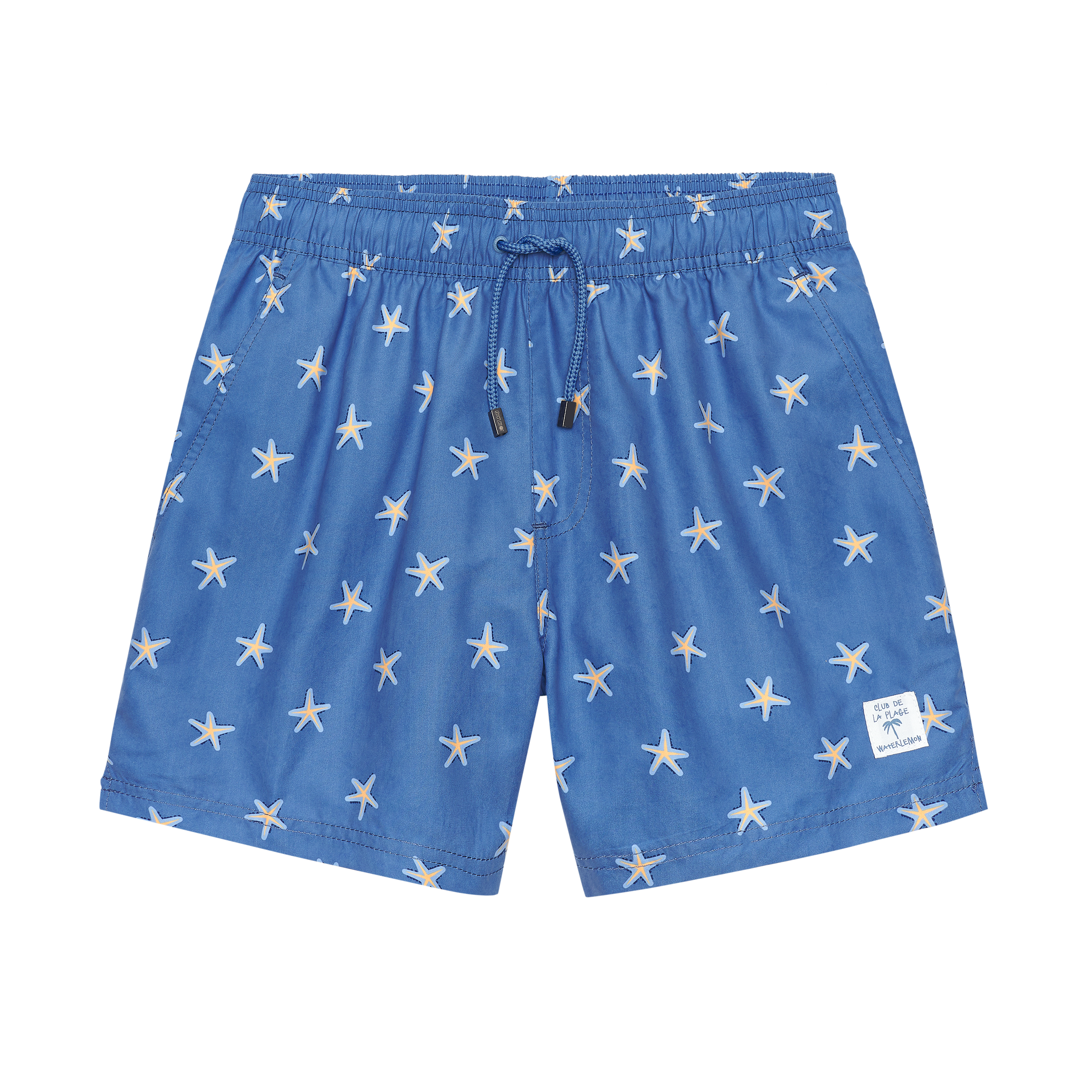 ESTAMPADO DE ESTRELLAS DE MAR CON FONDO COLOR AZUL.