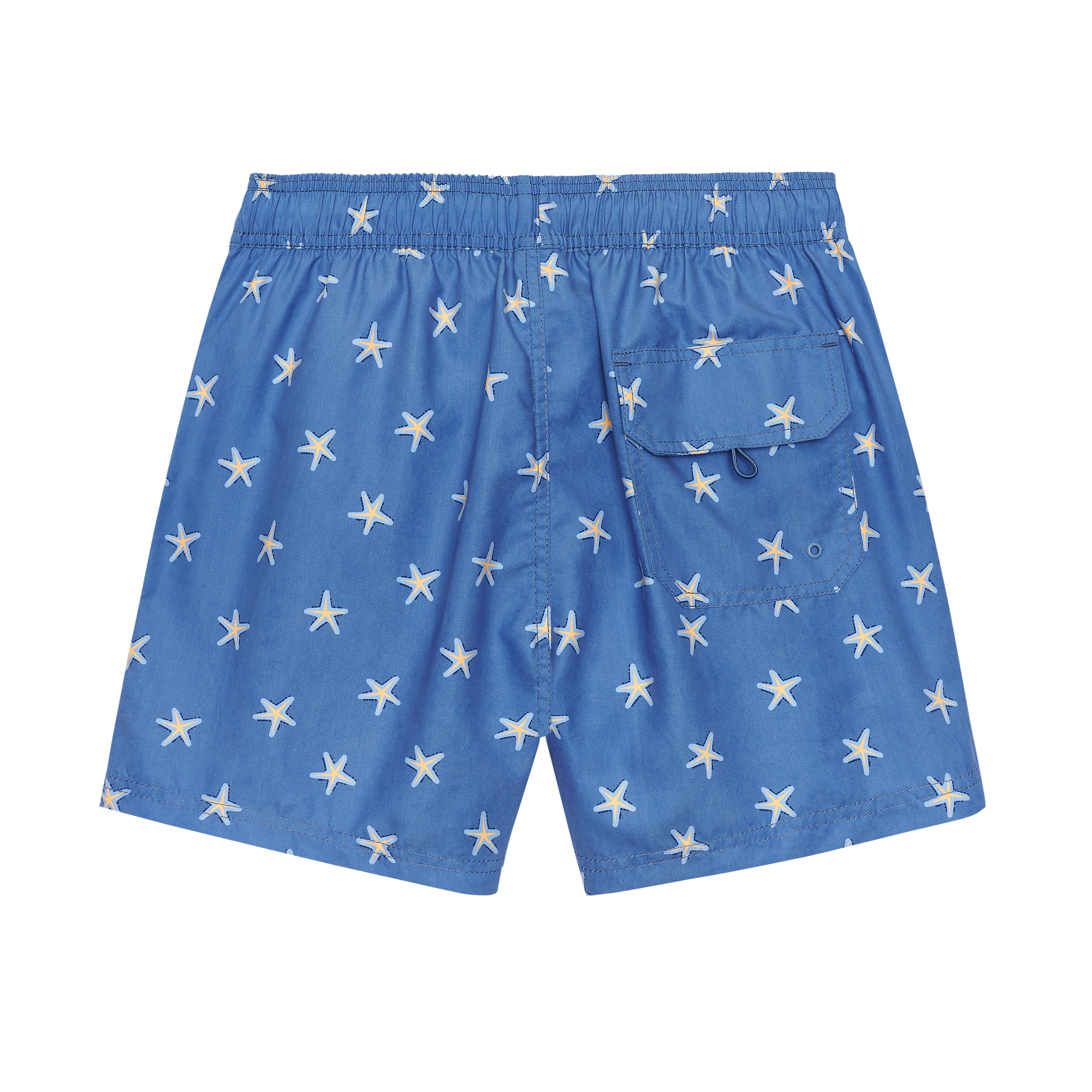 BAÑADOR CON CINTURILLA ELÁSTICA, CORDONES AJUSTABLES, BOLSILLOS LATERALES EN DELANTERO Y BOLSILLO TRASERO CON CIERRE DE VELCRO.