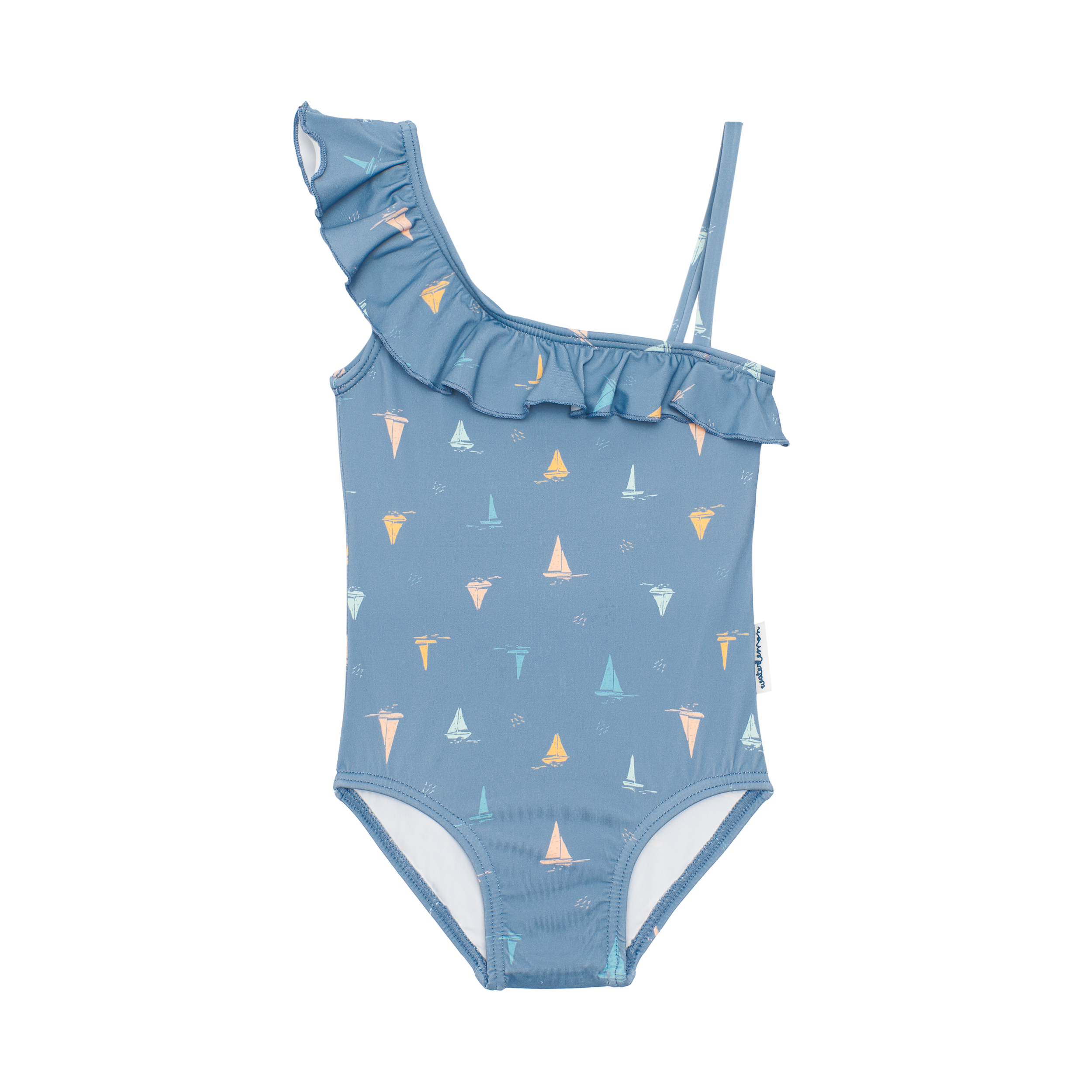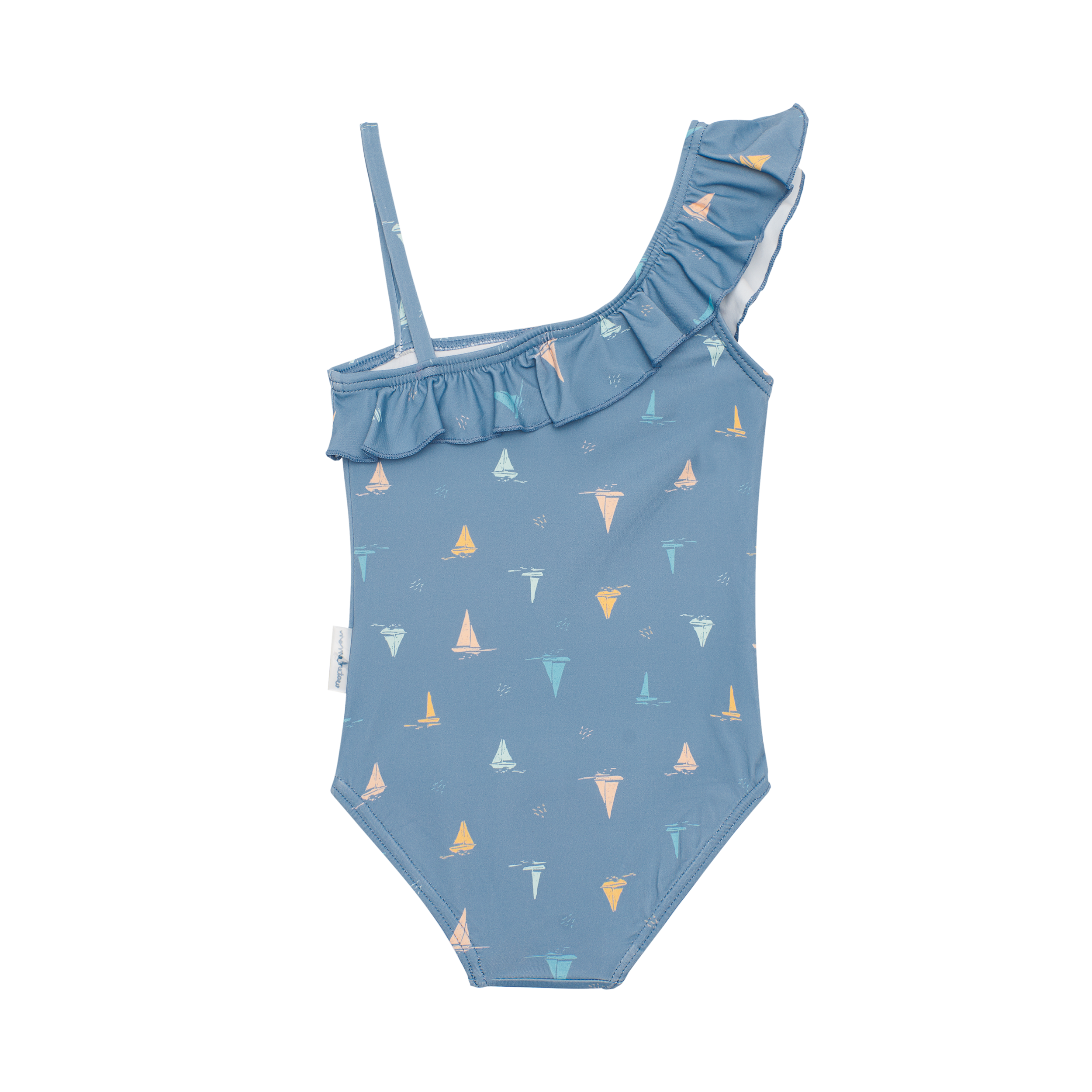 BAÑADOR ESCOTE ASIMÉTRICO CON VOLANTE Y TIRANTE FINO.