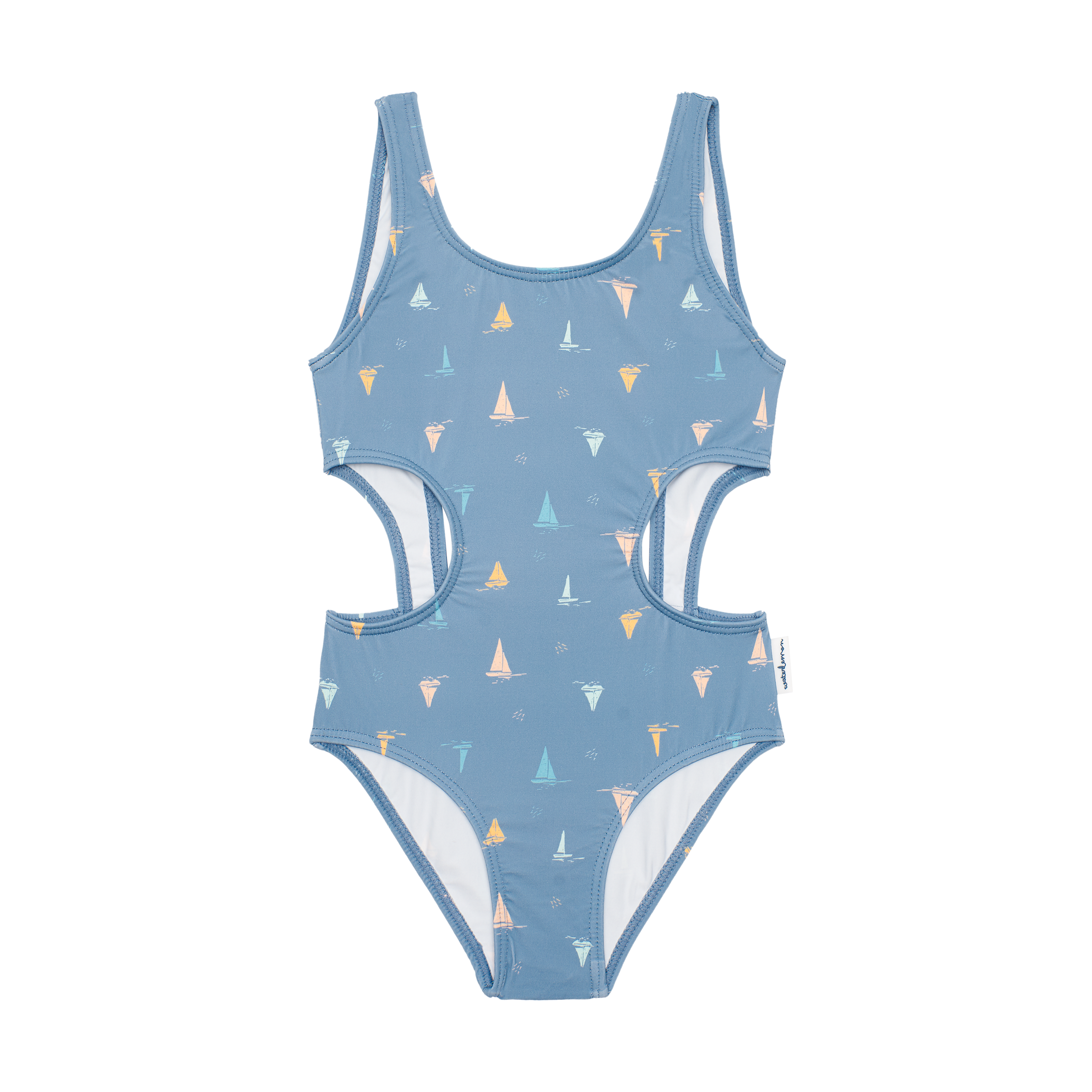 ESTAMPADO CATAMARANES CON FONDO AZUL MEDIO.