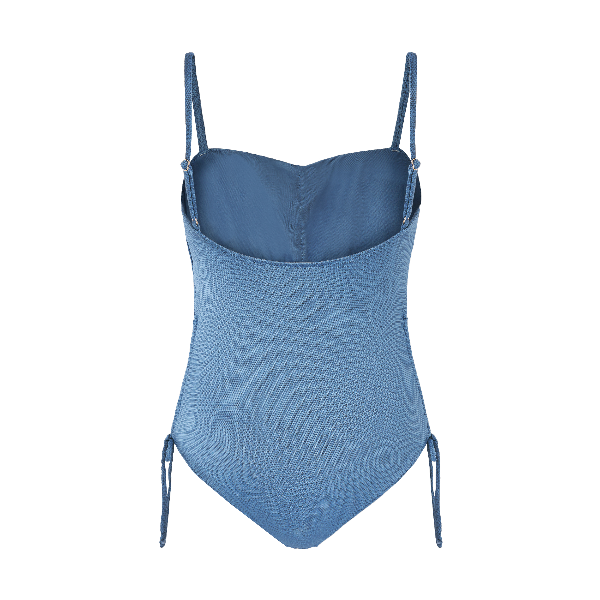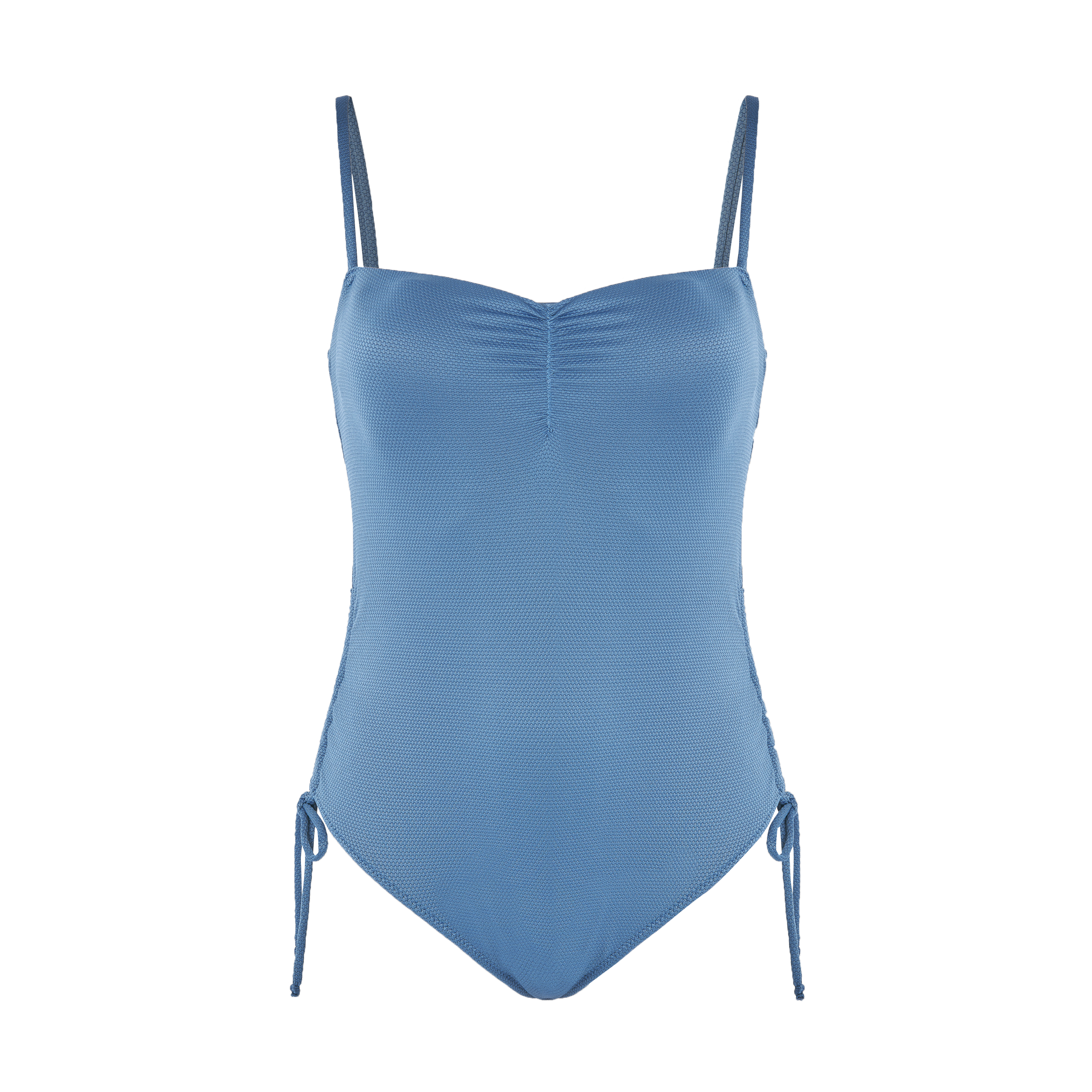 BAÑADOR CON ESCOTE CORAZÓN FRUNCIDO, TIRANTES FINOS AJUSTABLES Y COPA ESTRAÍBLE. LATERALES CON CORDÓN AJUSTABLE PARA UN EFECTO FRUNCIDO.