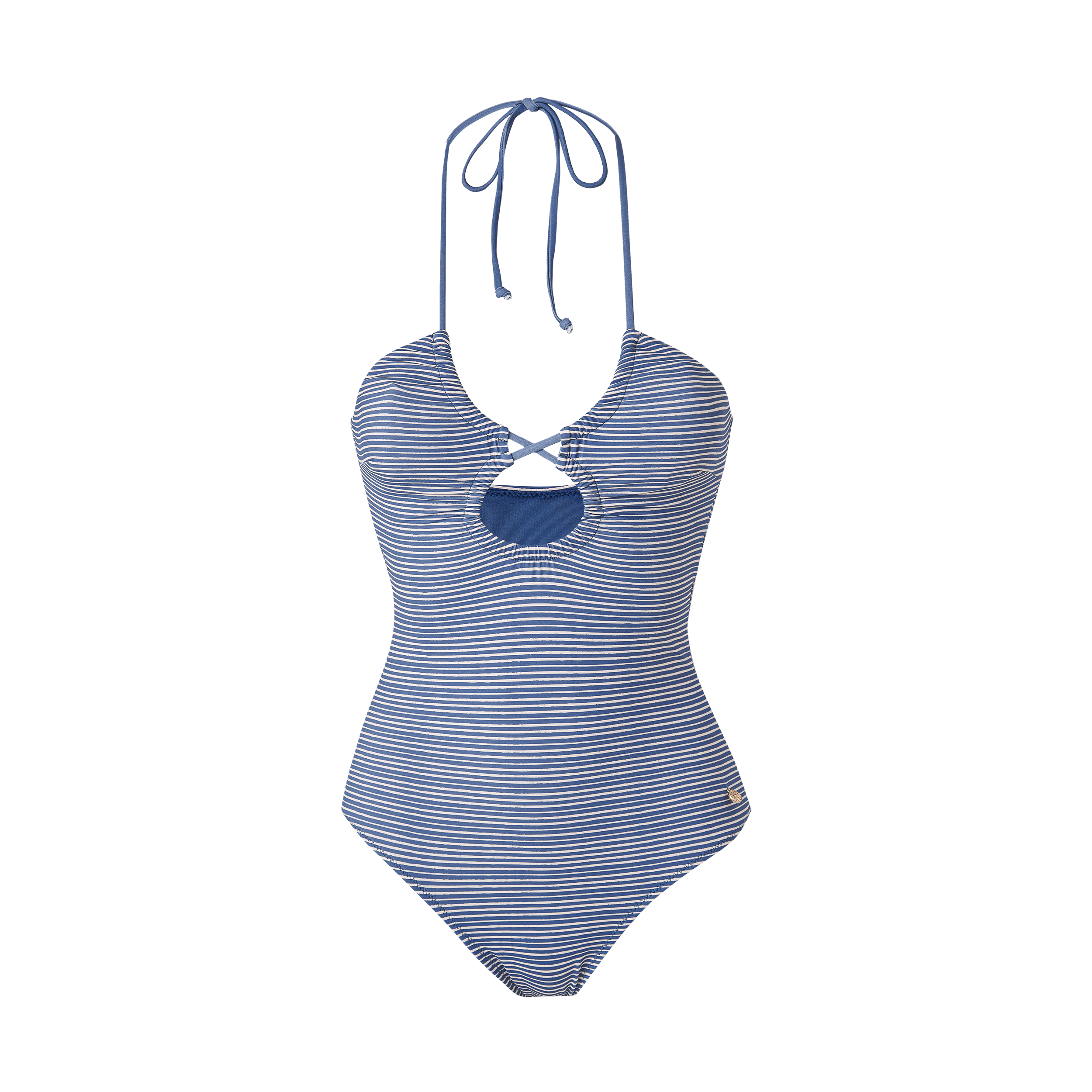 BAÑADOR ESCOTE HALTER FRUNCIDO, LAZADA AL CUELLO Y COPA ESTRAÍBLE.