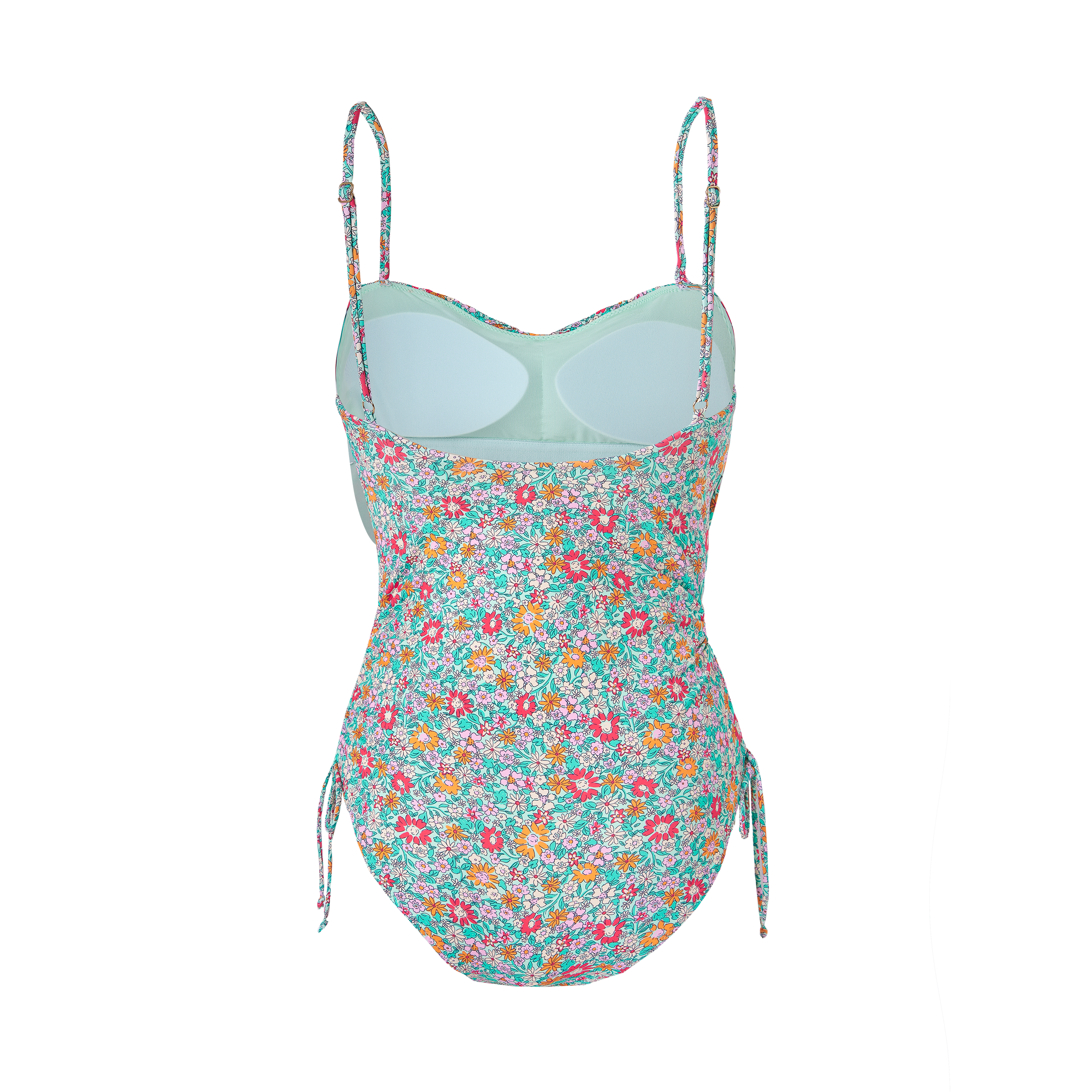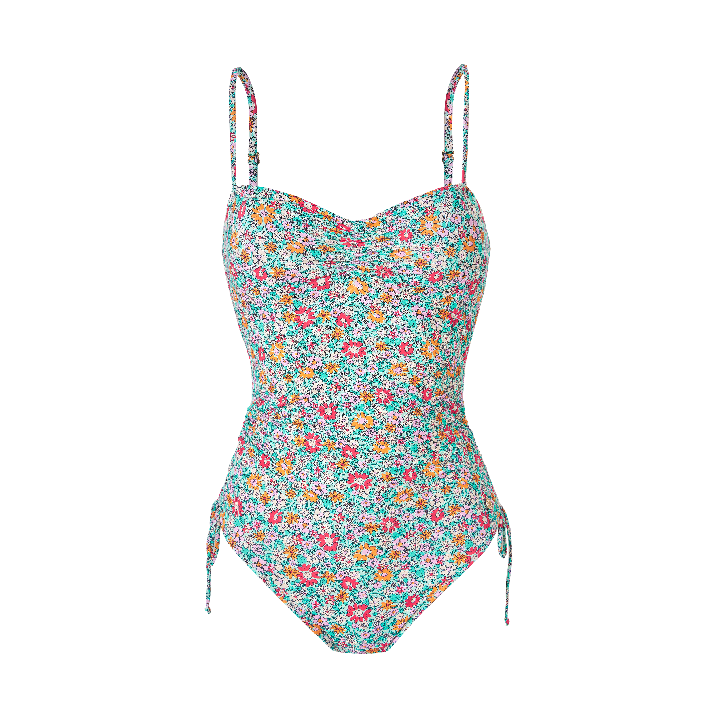 BAÑADOR CON ESCOTE CORAZÓN FRUNCIDO, TIRANTES FINOS AJUSTABLES Y COPA ESTRAÍBLE. LATERALES CON CORDÓN AJUSTABLE PARA UN EFECTO FRUNCIDO.