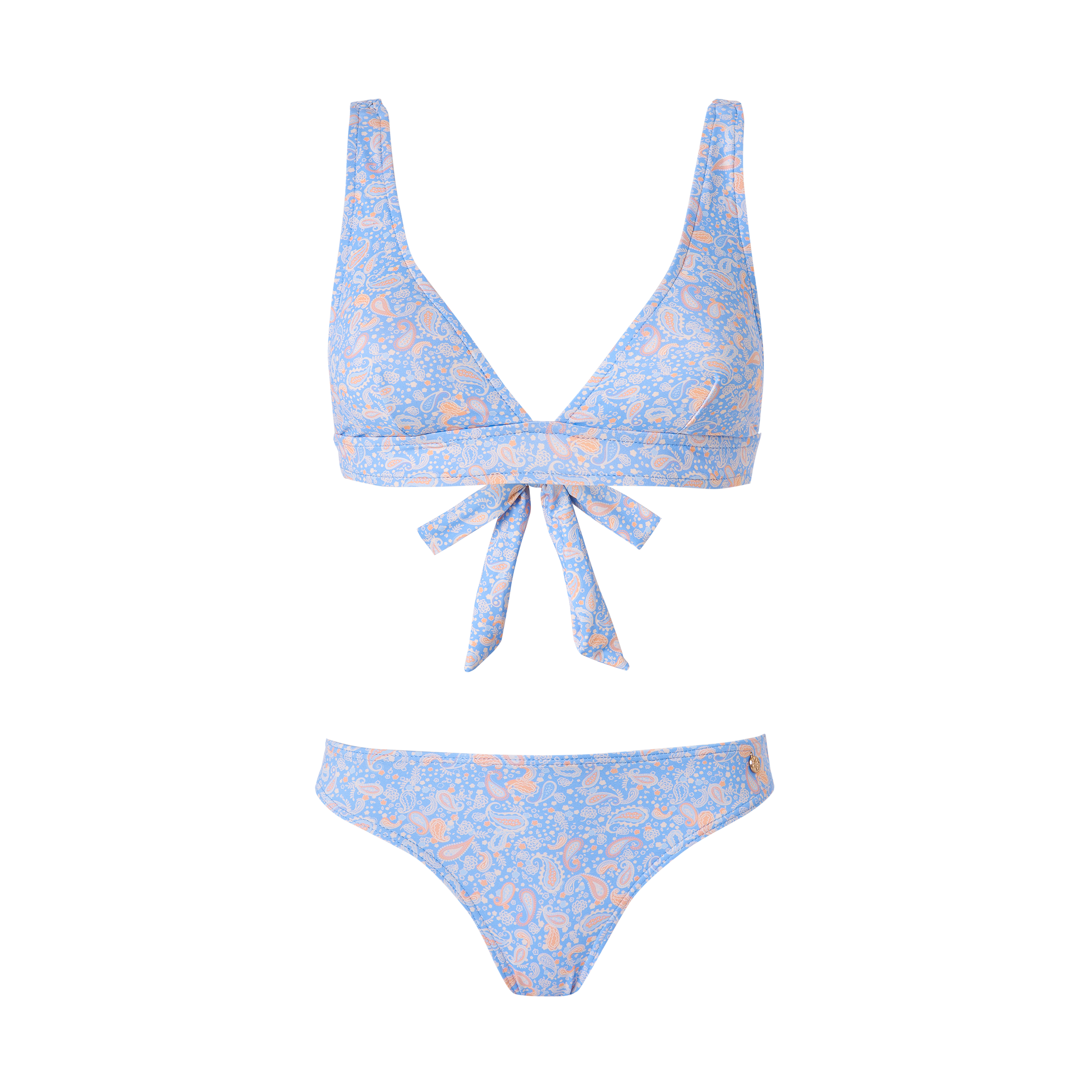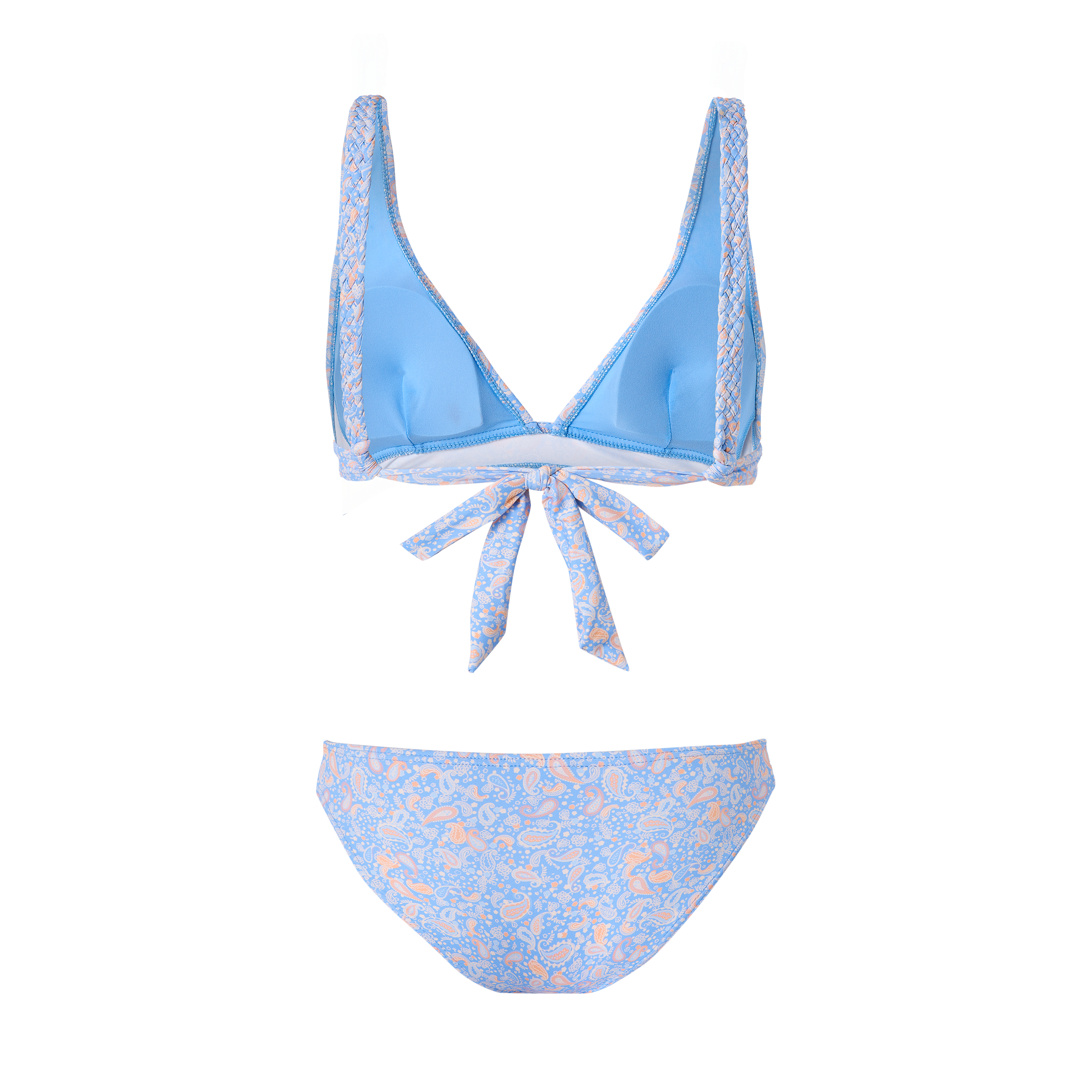 BIKINI DOS PIEZAS. SUJETADOR TIPO HALTER CON COPA EXTRAÍBLE, SIN AROS. TIRANTE TRENZADO Y LAZADA EN ESPALDA.