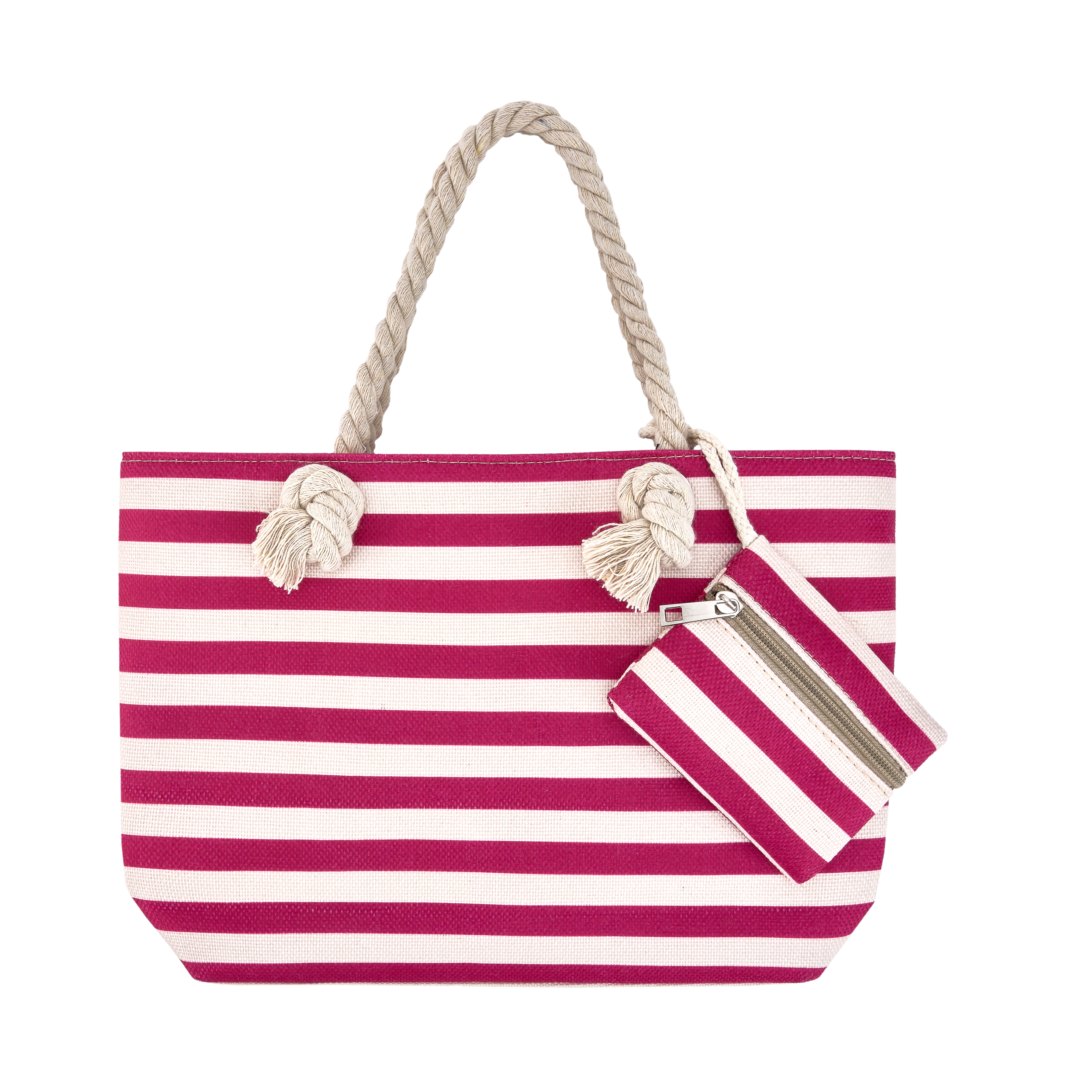 BOLSO FORMATO MINI CON EL INTERIOR FORRADO. MONEDERO INTEGRADO EN EL ASA DE HOMBRO Y CIERRE MEDIANTE CREMALLERA. ESTAMPADO DE RAYAS ROJAS CON FONDO CRUDO.