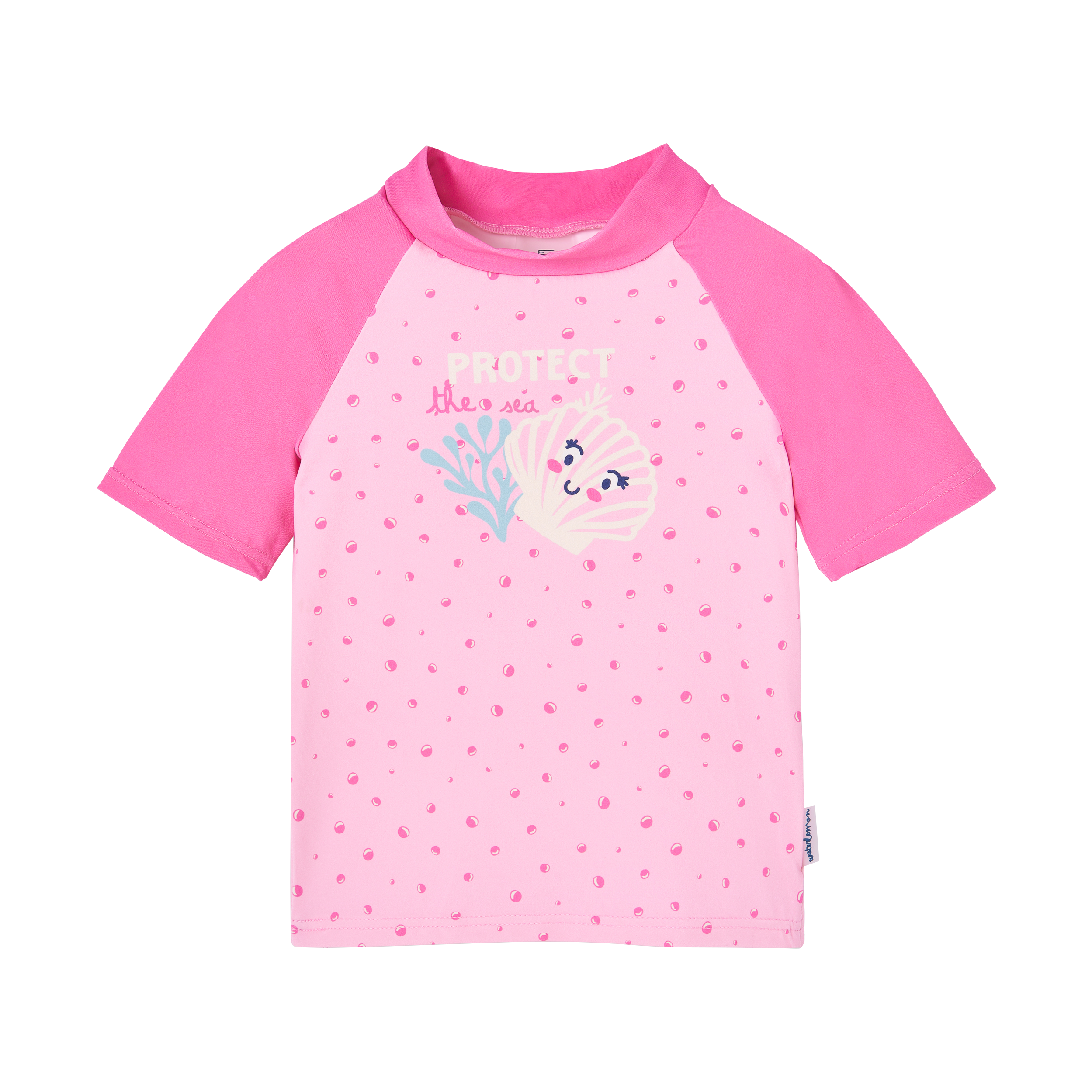 CAMISETA DE BAÑO CON CUELLO ELEVADO CORTO Y MANGA CORTA RANGLAN.