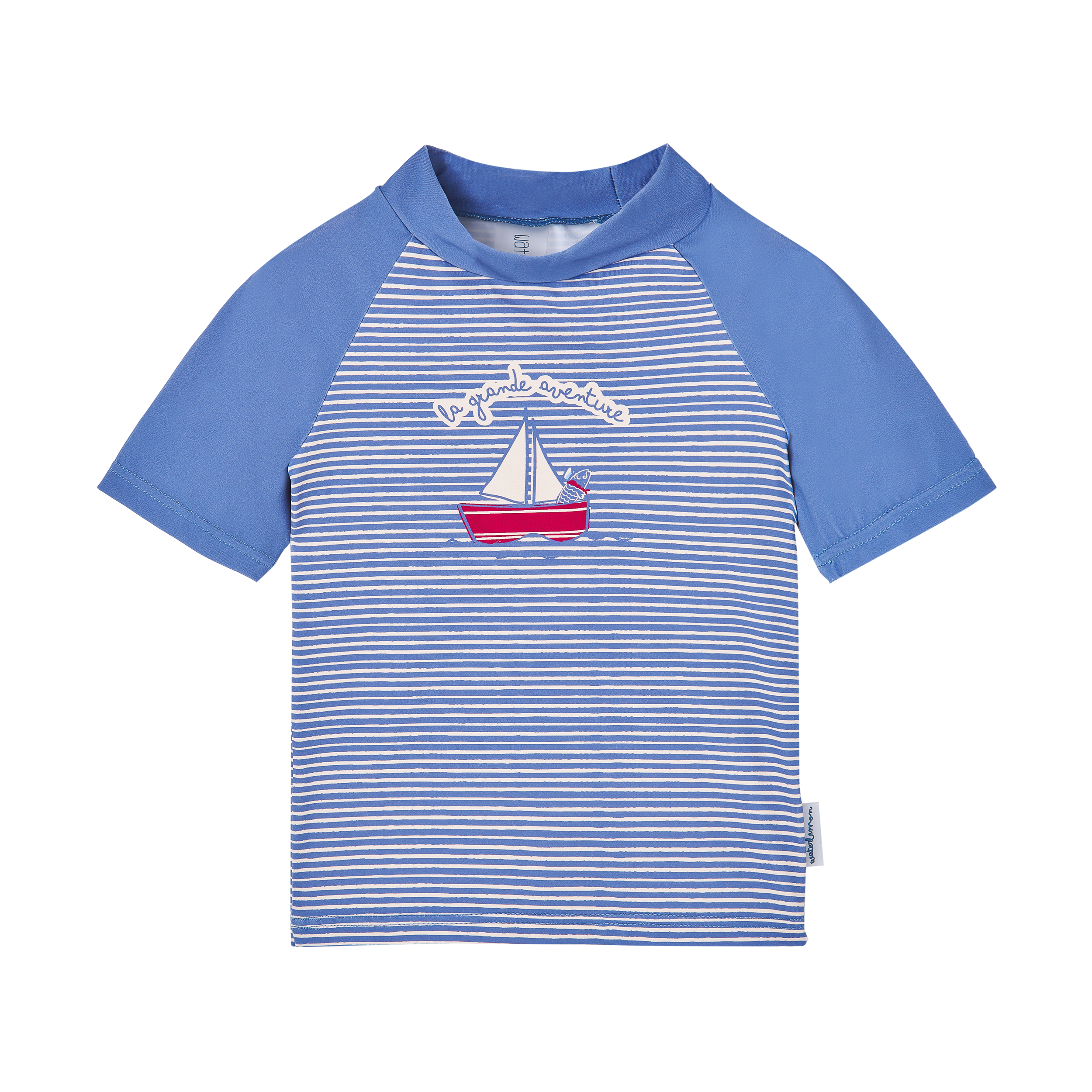 CAMISETA DE BAÑO ESCOTE REDONDO Y MANGA CORTA RANGLAN.