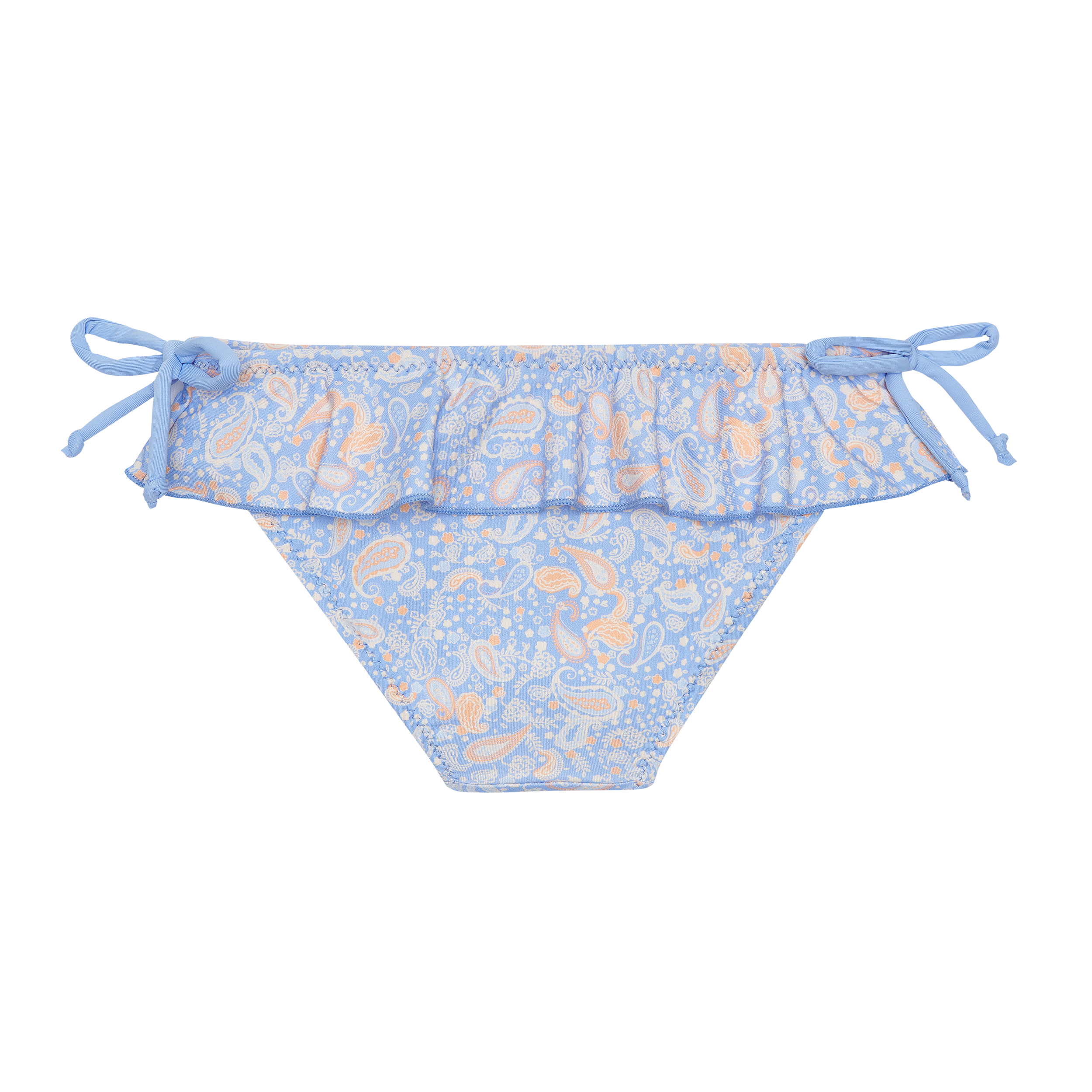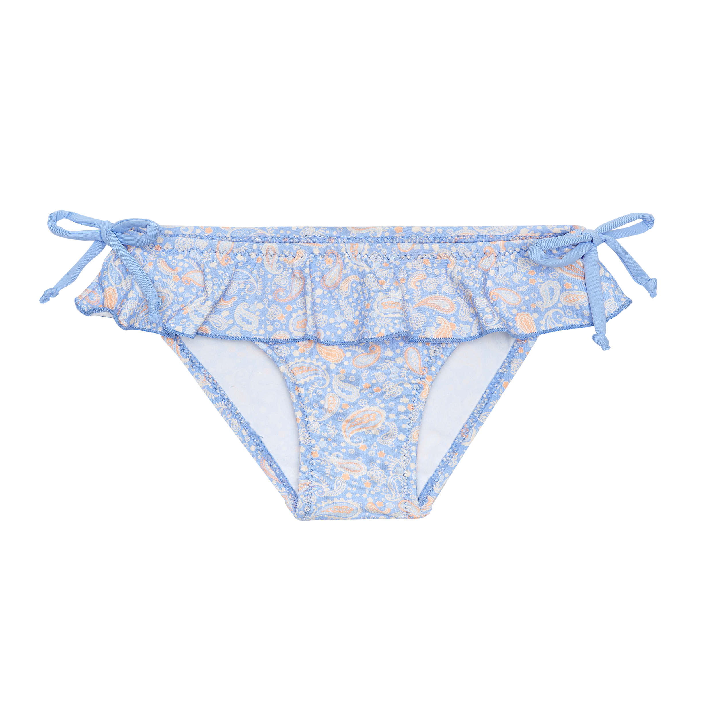 BRAGUITA DE BAÑO CON CINTURILLA ELÁSTICA, VOLANTE Y LAZOS EN LOS LATERALES.