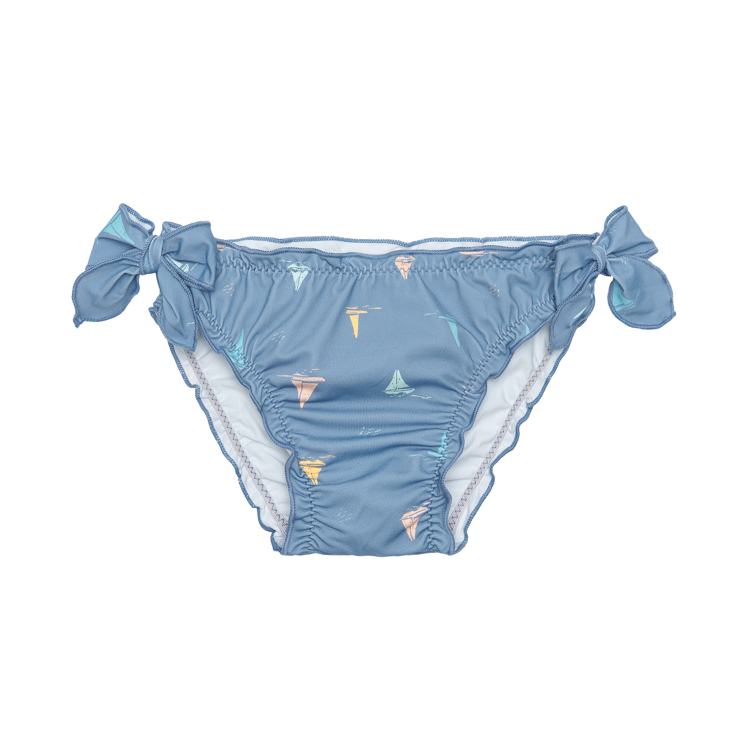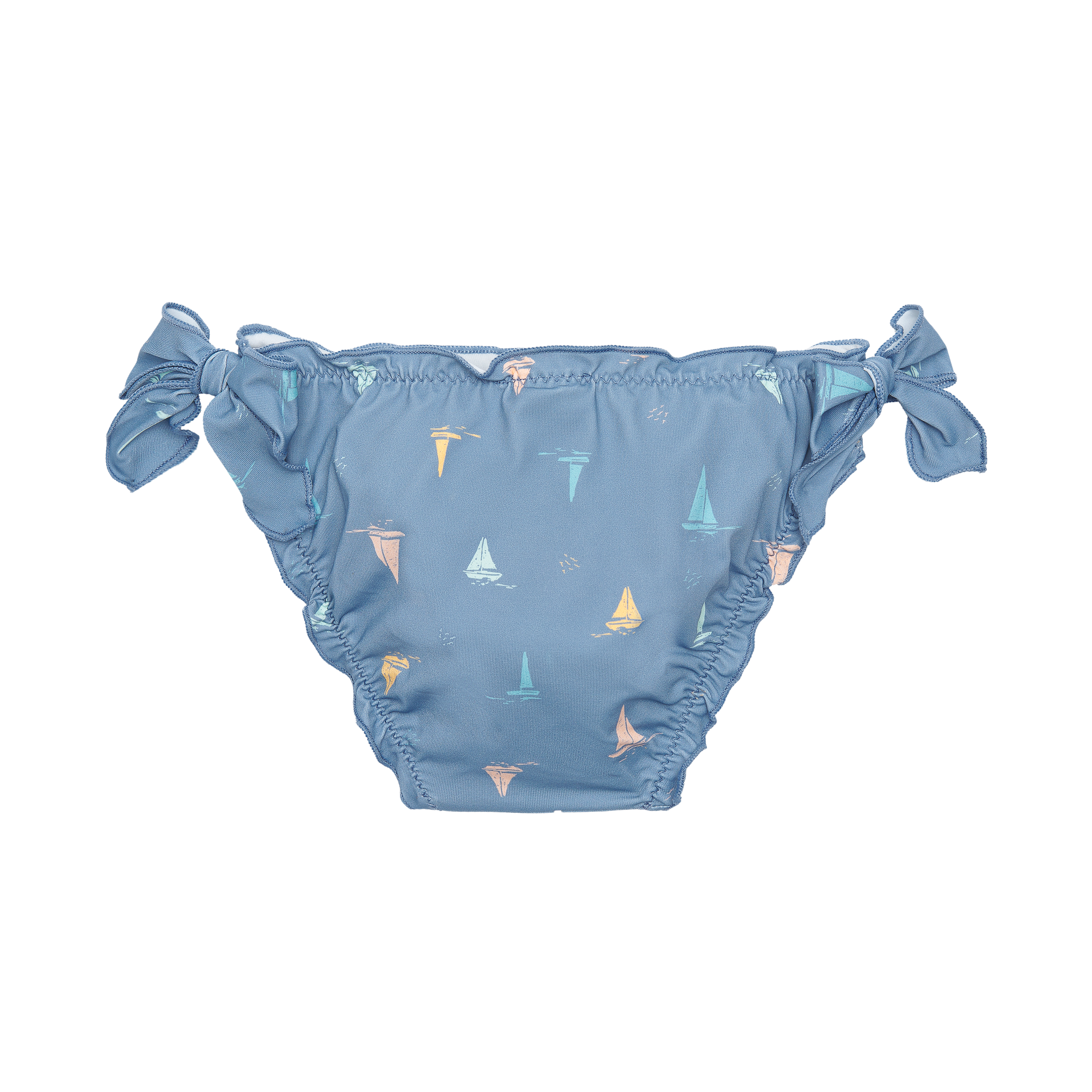 BRAGUITA DE BAÑO CON CINTURILLA ELÁSTICA, DETALLE NIDO DE ABEJA Y VOLANTE.