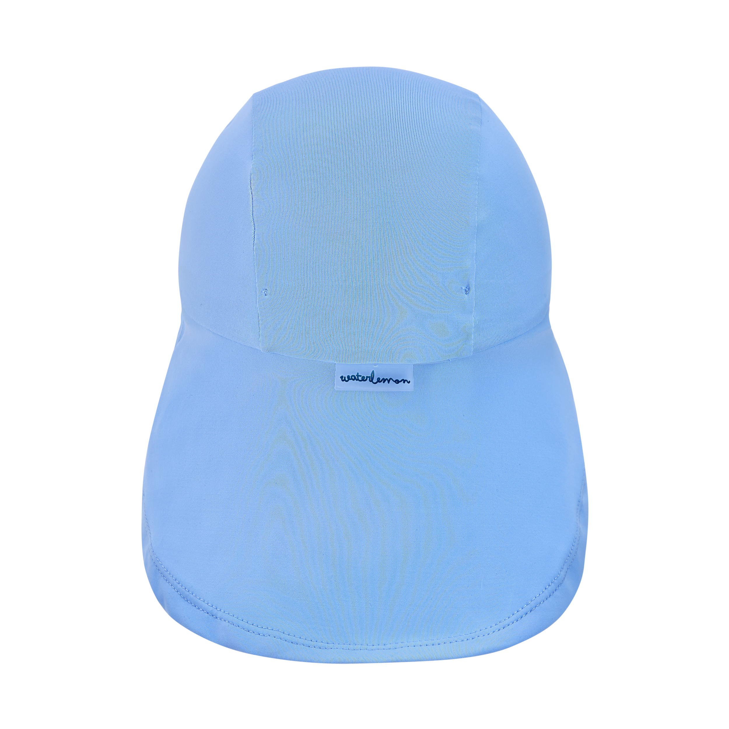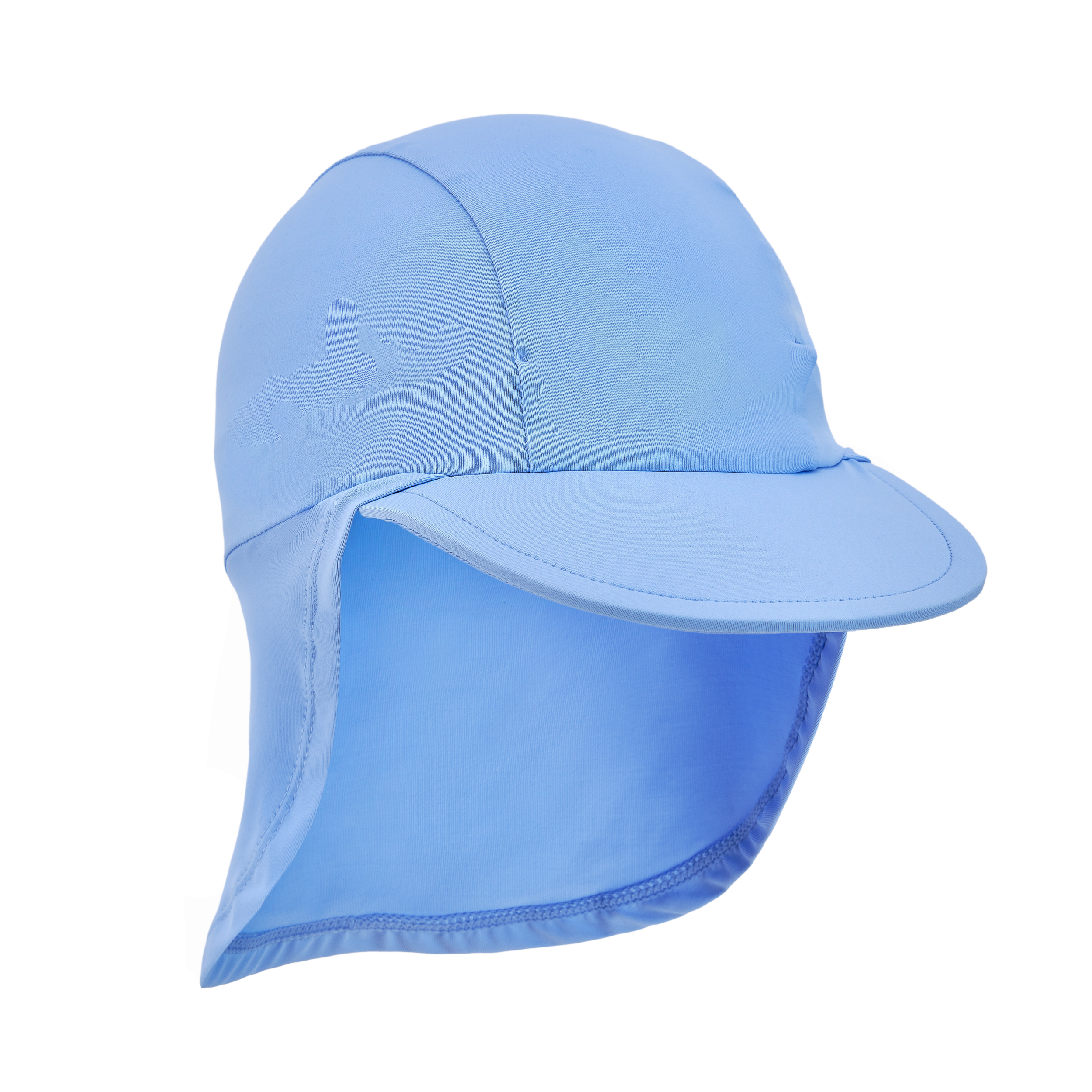 GORRITO DE BAÑO INFANTIL CON VISERA Y SOLAPA TRASERA PARA PROTEGER DEL SOL CON FONDO COLOR AZUL CLARO.