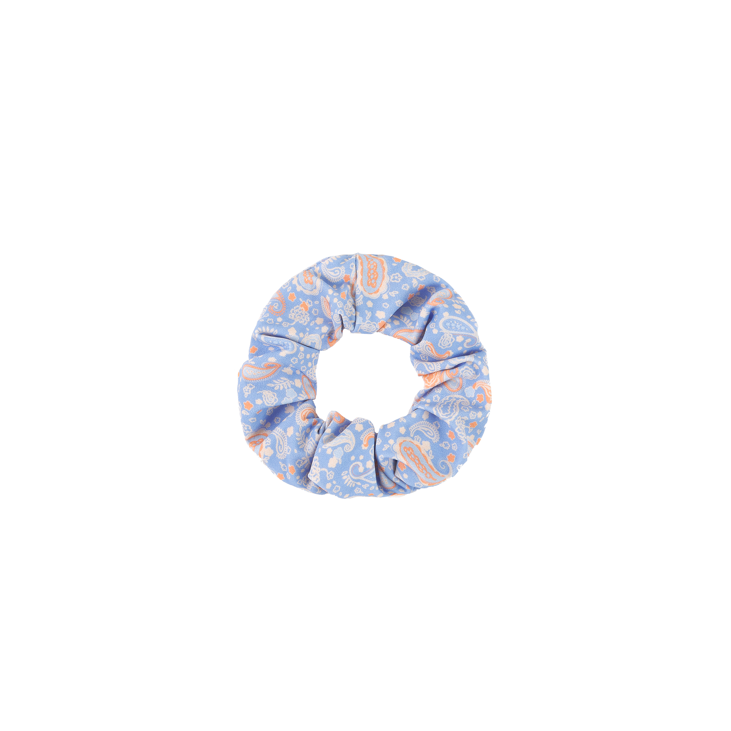 COLETERO ELÁSTICO ESTAMPADO DE CACHEMIR CON FONDO AZUL CLARO.