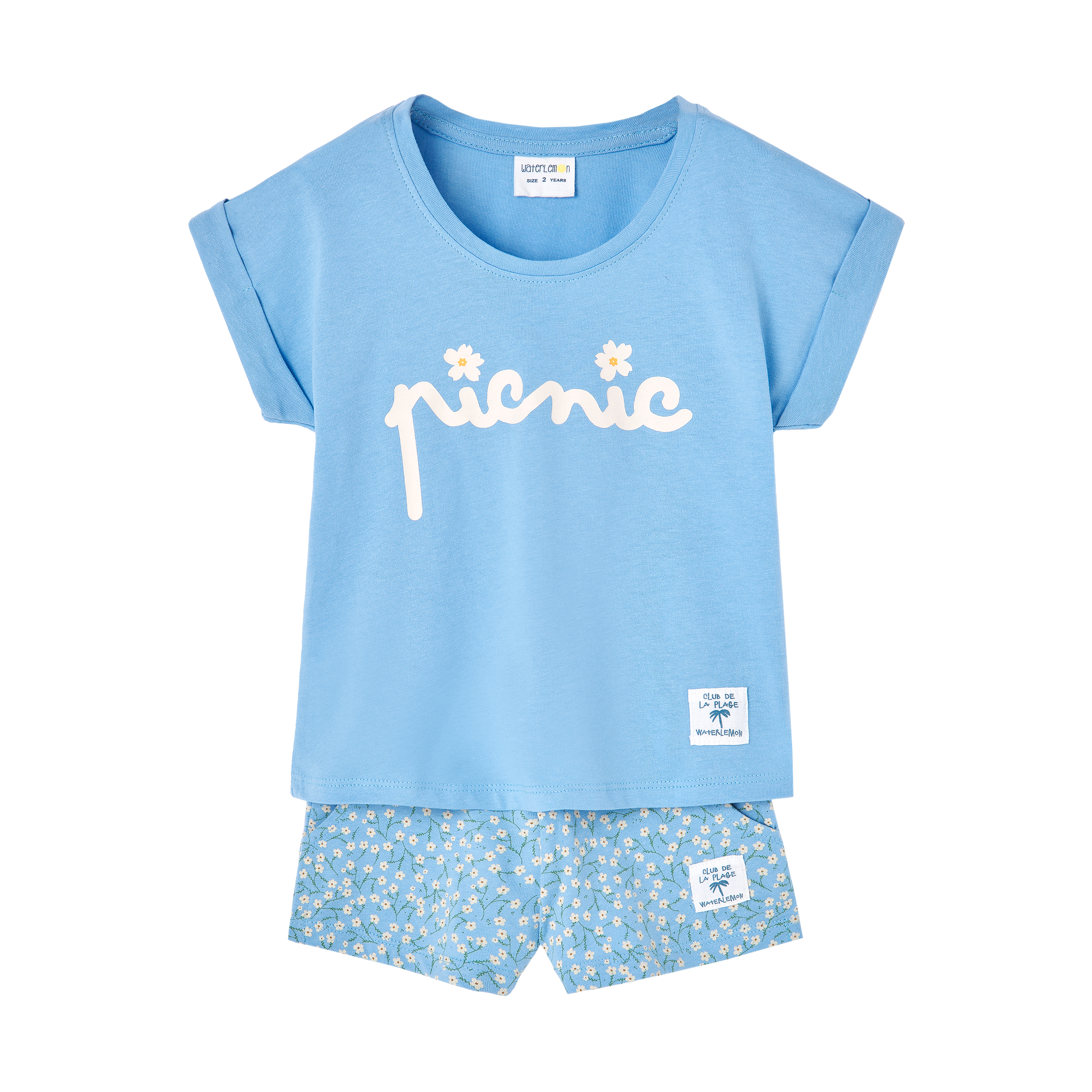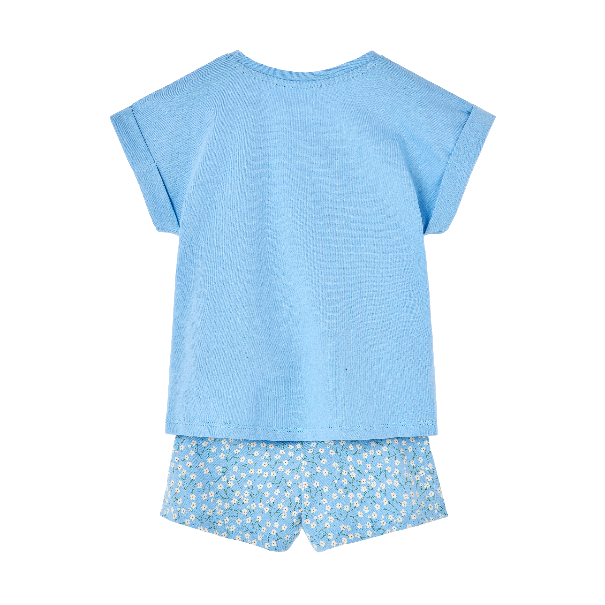 PIJAMA DOS PIEZAS. CAMISETA ESCOTE REDONDO Y MANGA CORTA CON VUELTA.