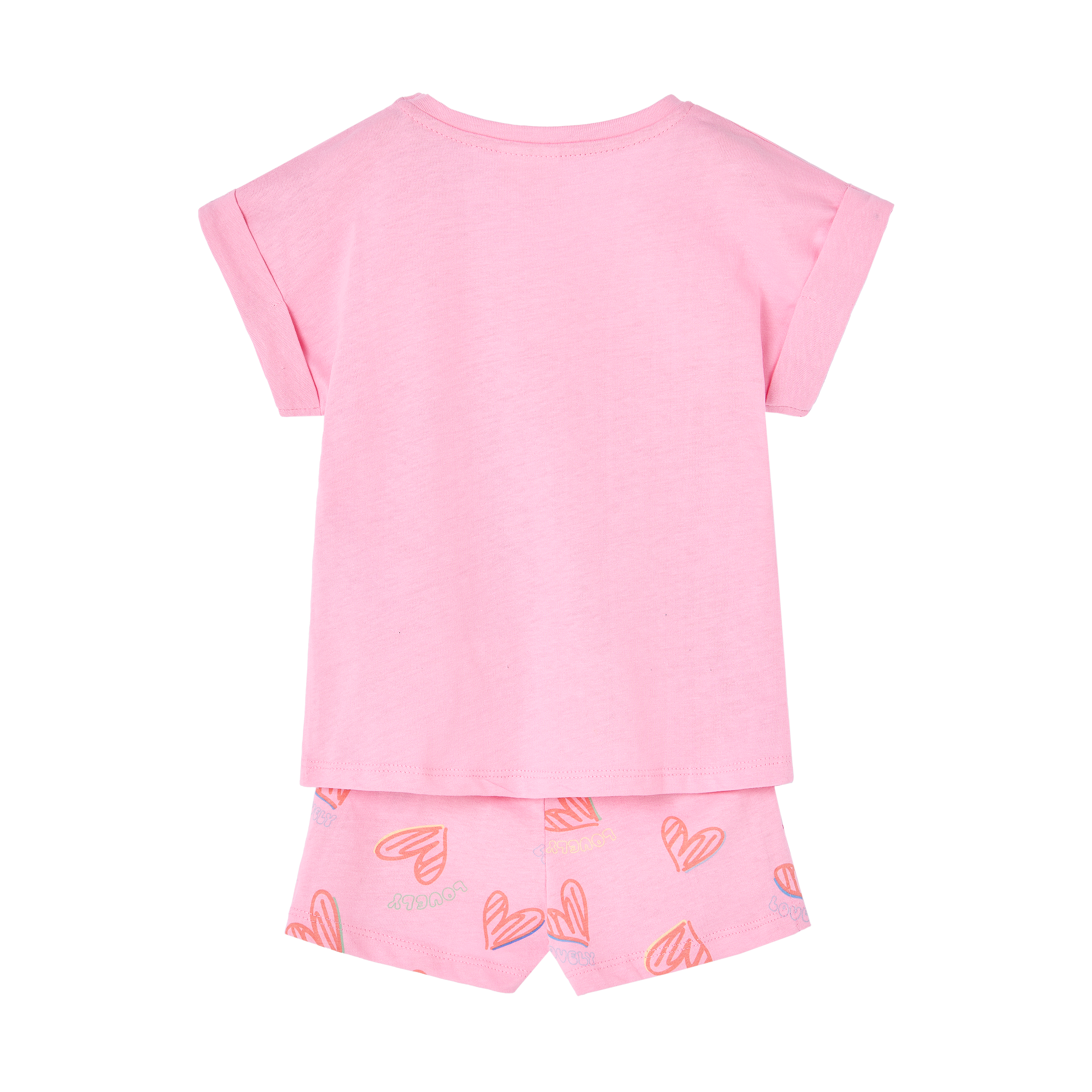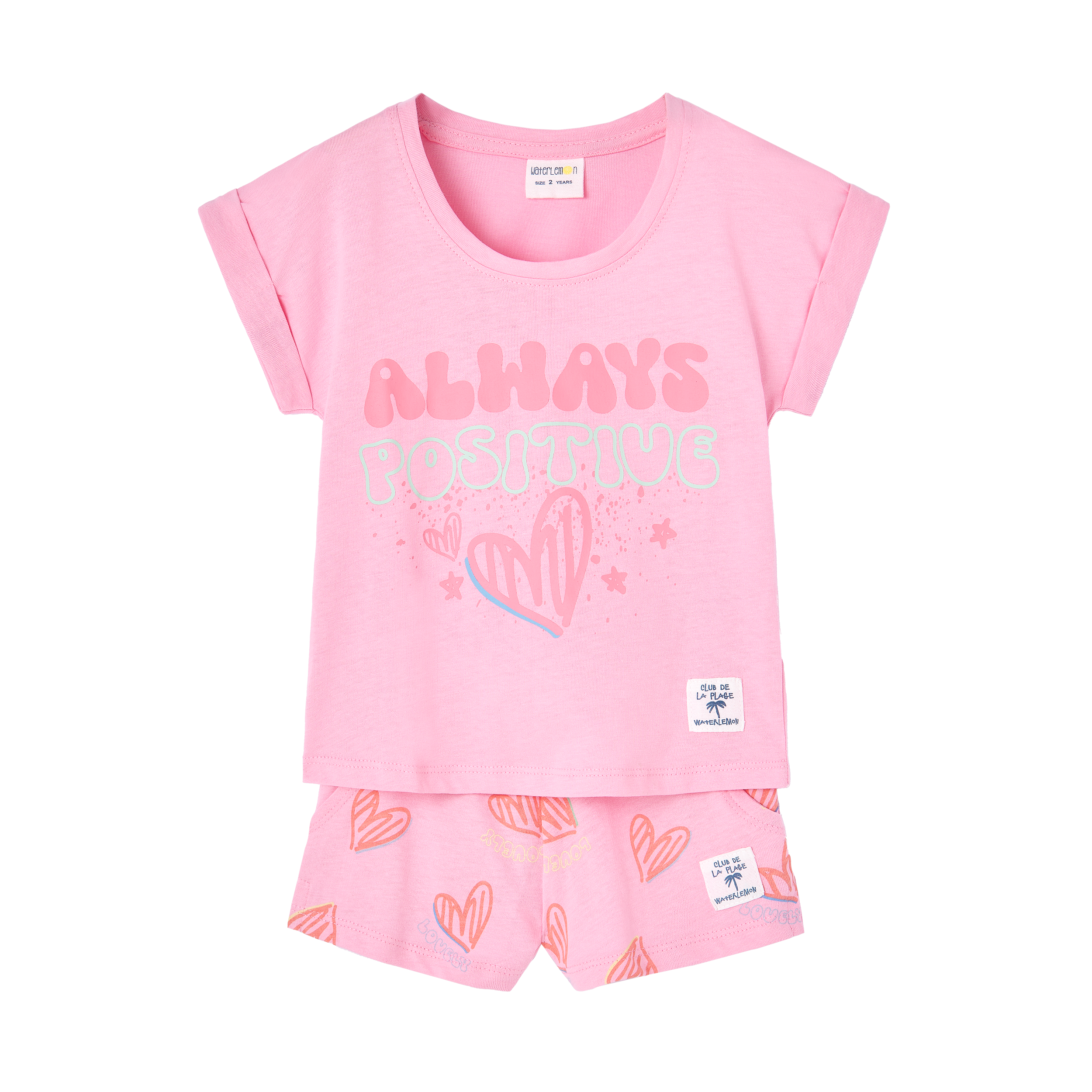 PIJAMA DOS PIEZAS. CAMISETA ESCOTE REDONDO Y MANGA CORTA CON VUELTA.