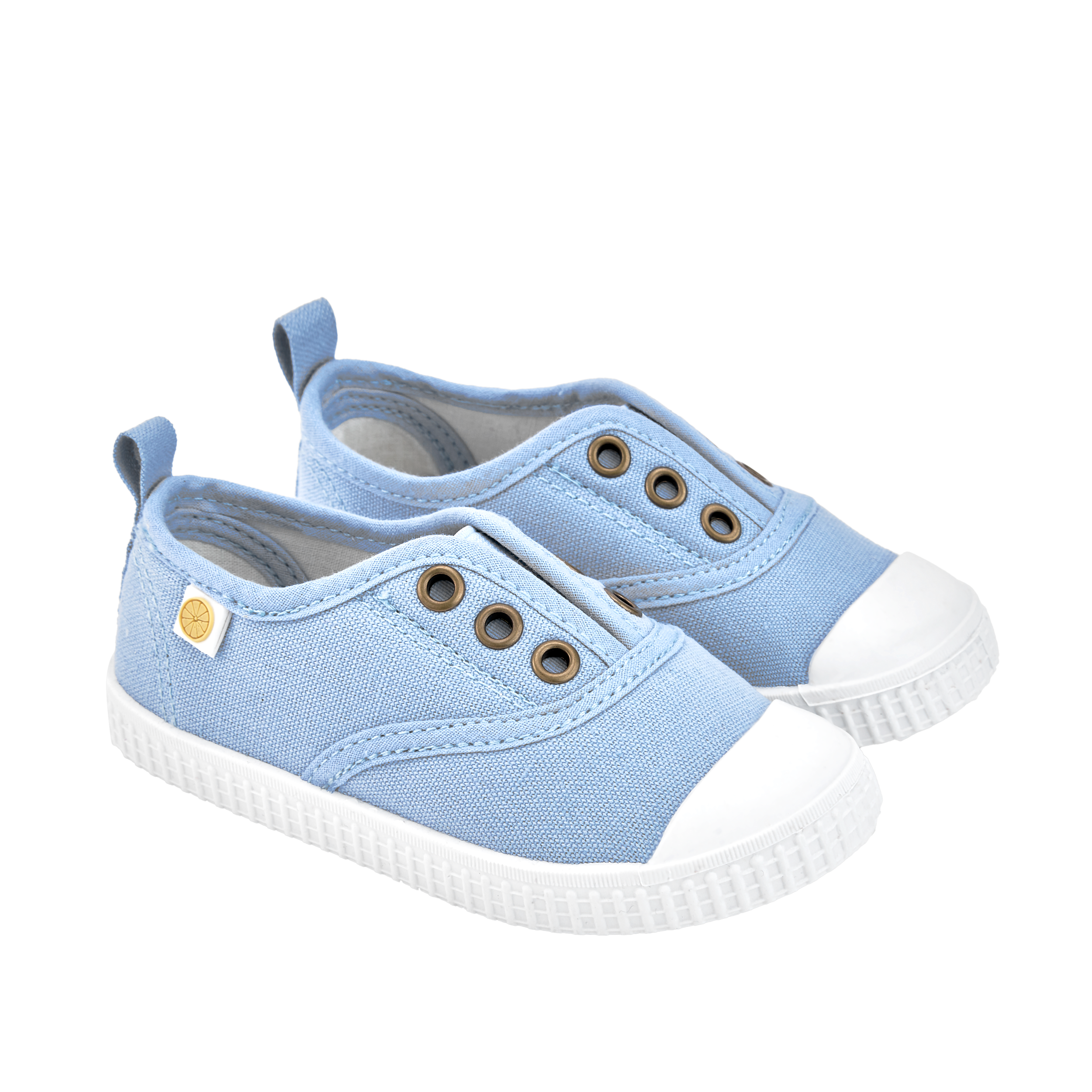 ZAPATILLA DE LONA EN COLOR AZUL CLARO SIN CORDONES CON REFUERZO DE GOMA EN LA PUNTERA PARA MAYOR RESISTENCIA.