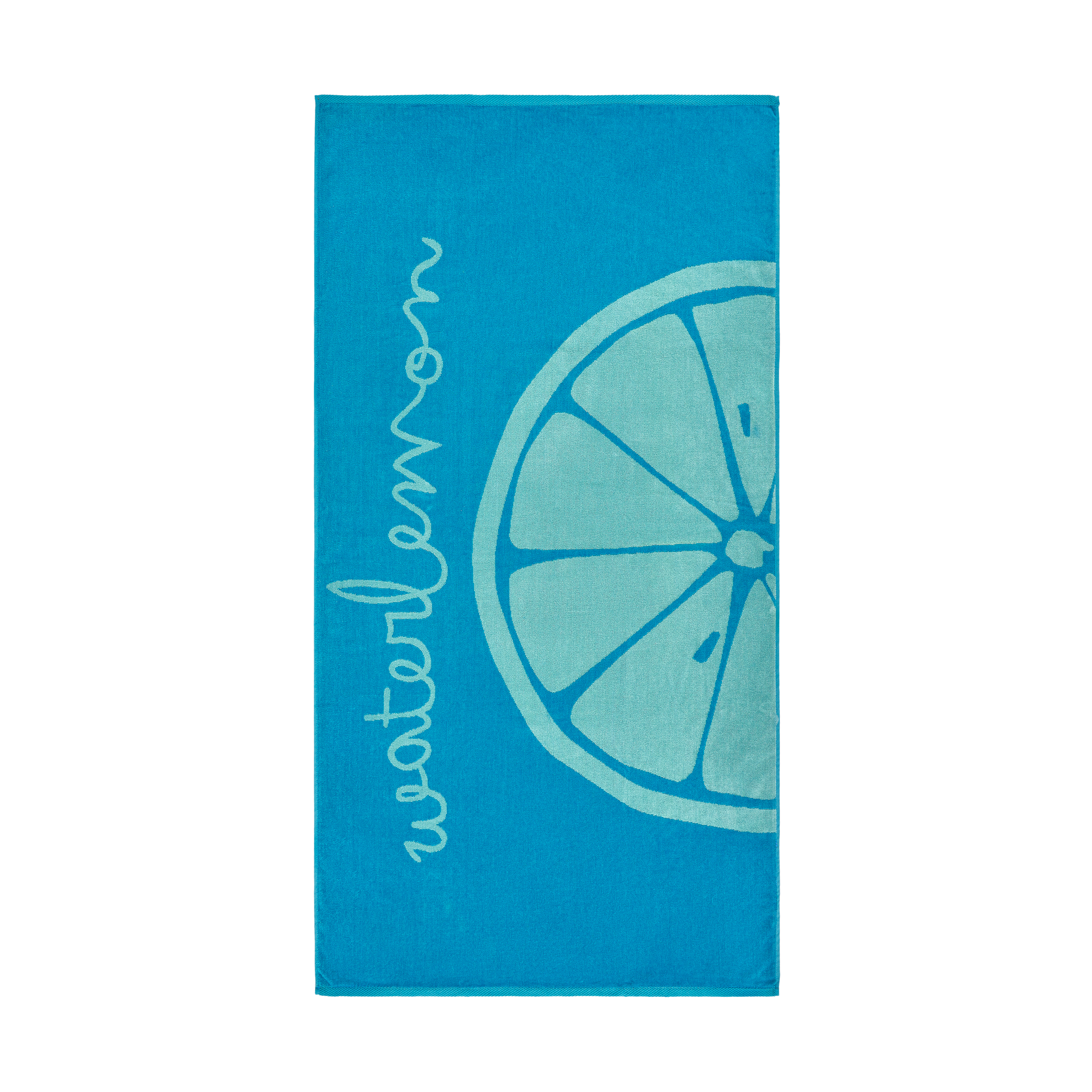 TOALLA DE PLAYA CON LOGO DE WATERLEMON ESTAMPADO EN JACQUARD CON COLOR DE FONDO VERDE.
