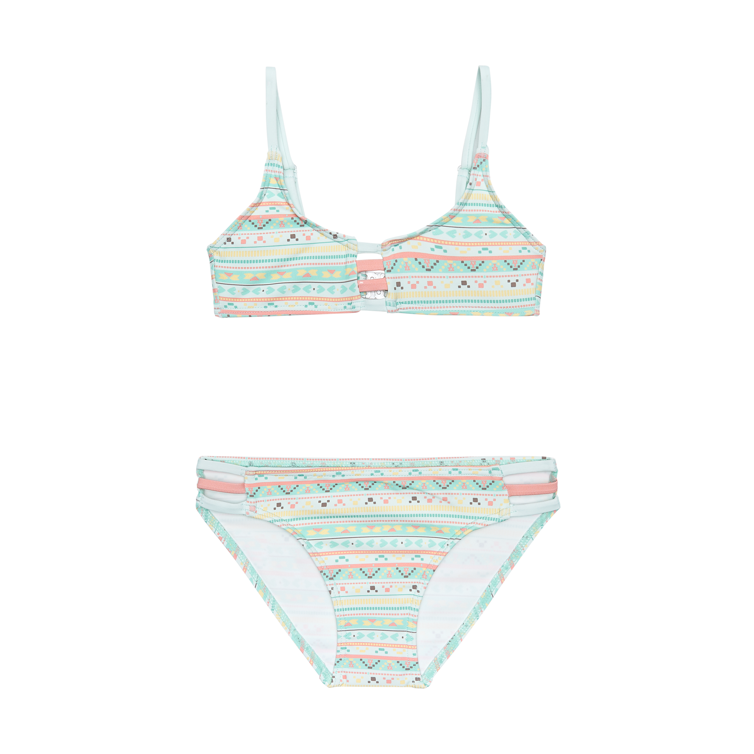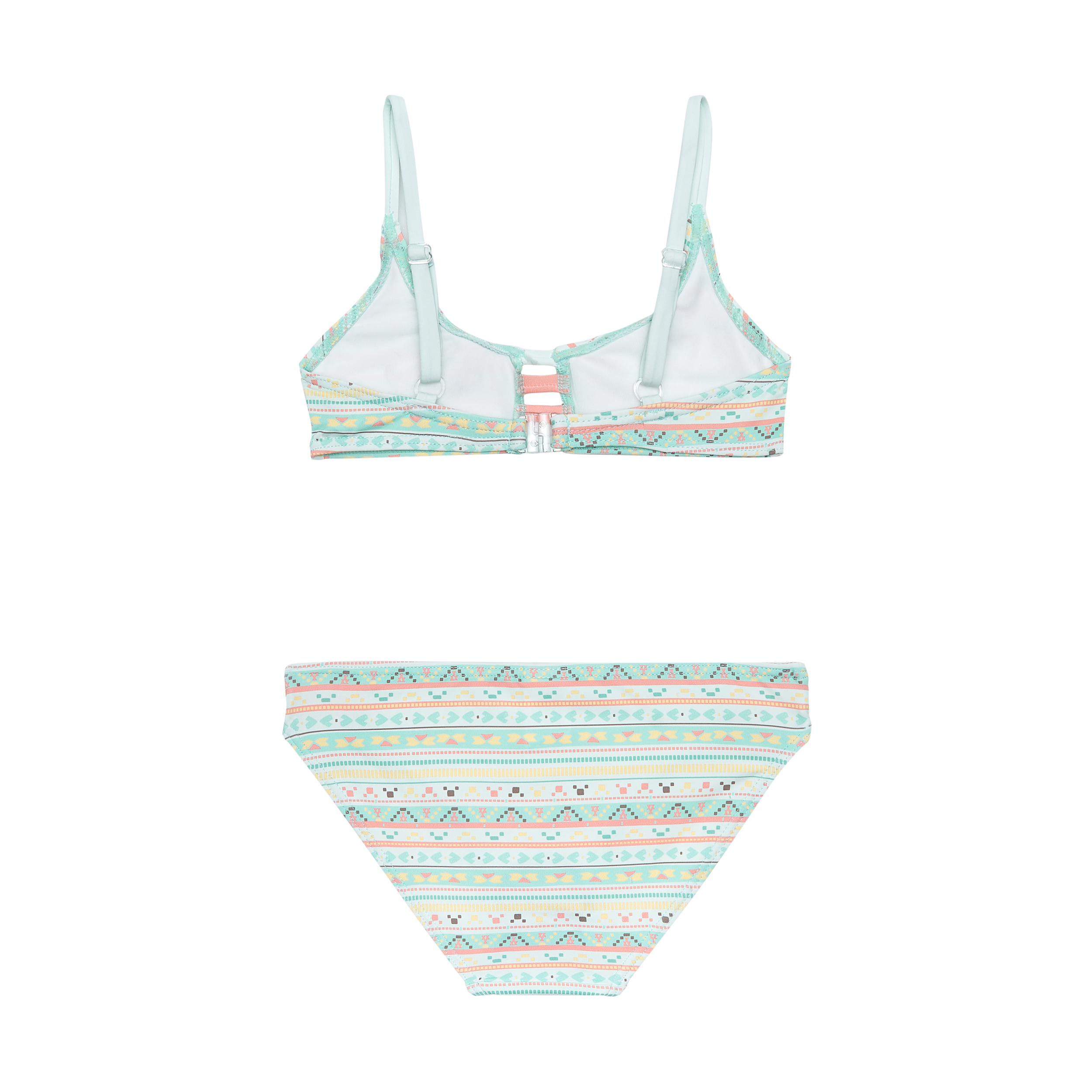 BIKINI DOS PIEZAS. TOP ESCOTE REDONDO CON COPA EXTRAÍBLE A PARTIR DE LA TALLA 10 AÑOS, SIN AROS. TIRAS EN EL CENTRO DELANTERO.
