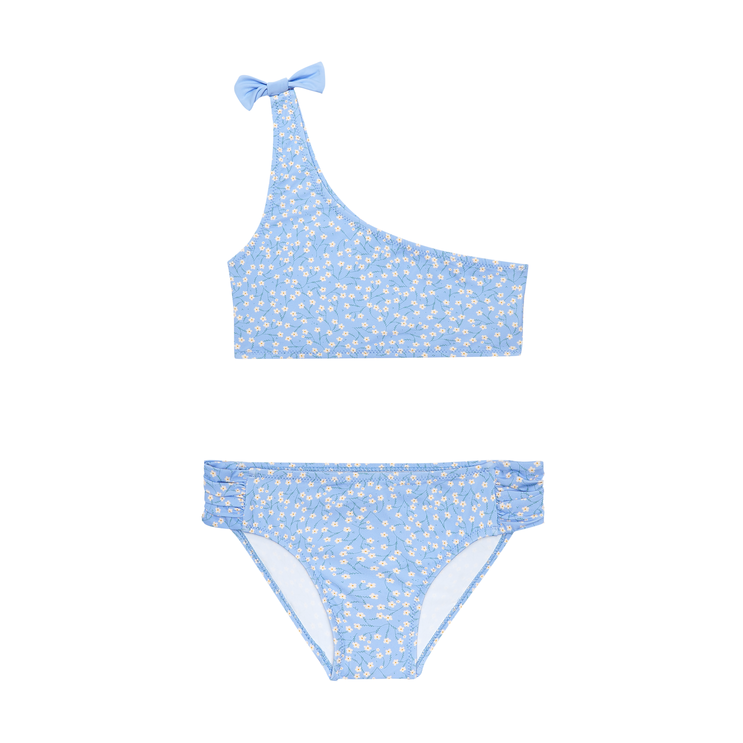BIKINI DOS PIEZAS. TOP ESCOTE ASIMÉTRICO CON COPA EXTRAÍBLE A PARTIR DE LA TALLA 10 AÑOS, SIN AROS. DETALLE LAZO EN EL TIRANTE.