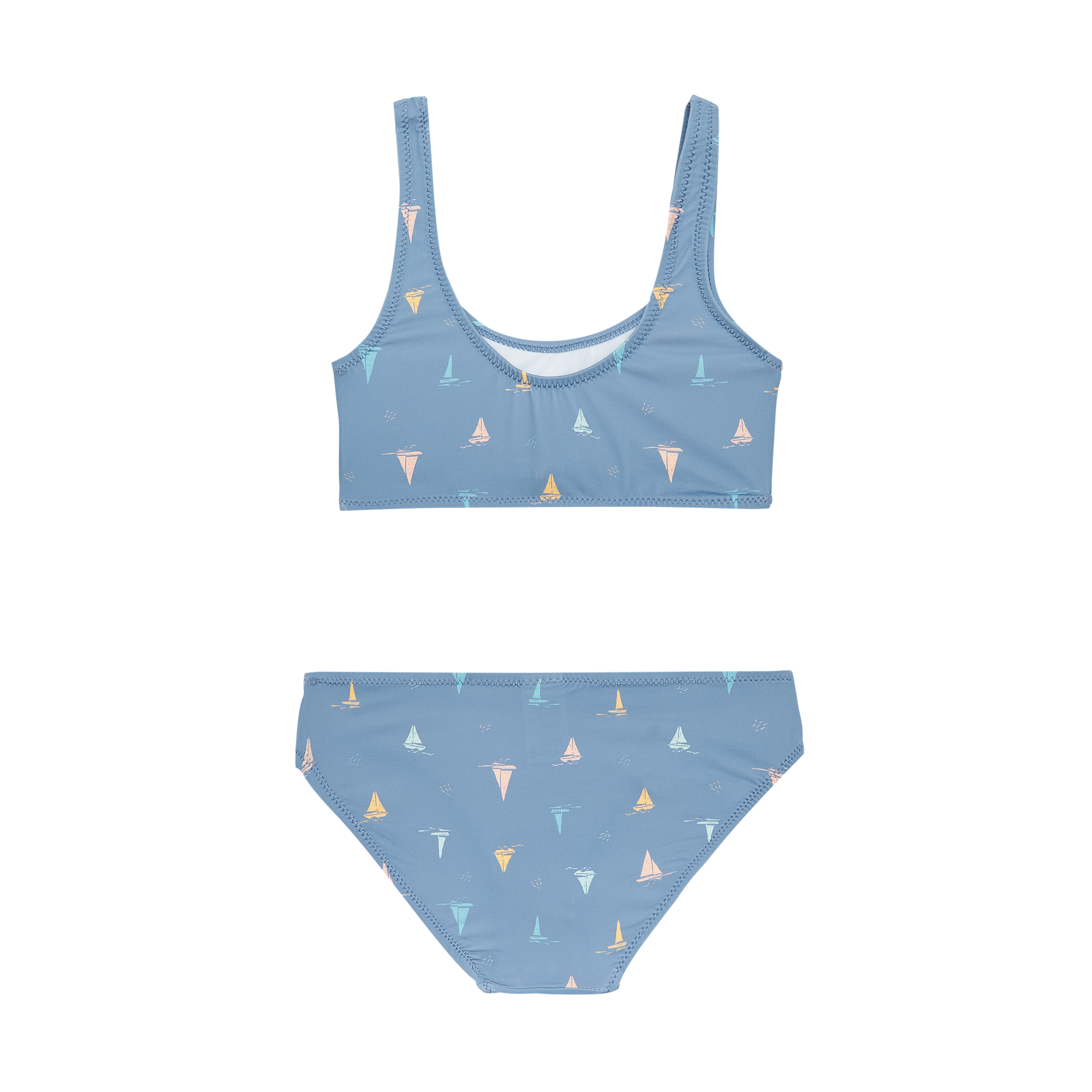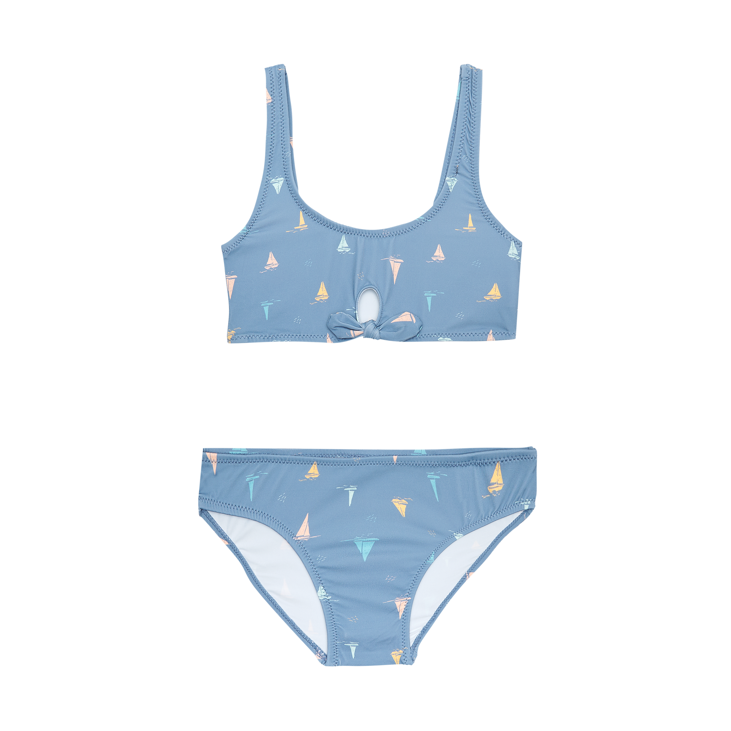 BIKINI DOS PIEZAS. TOP ESCOTE REDONDO CON PEQUEÑA ABERTURA DELANTERA, LAZO COSIDO Y COPA EXTRAÍBLE A PARTIR DE LA TALLA 10 AÑOS, SIN AROS.