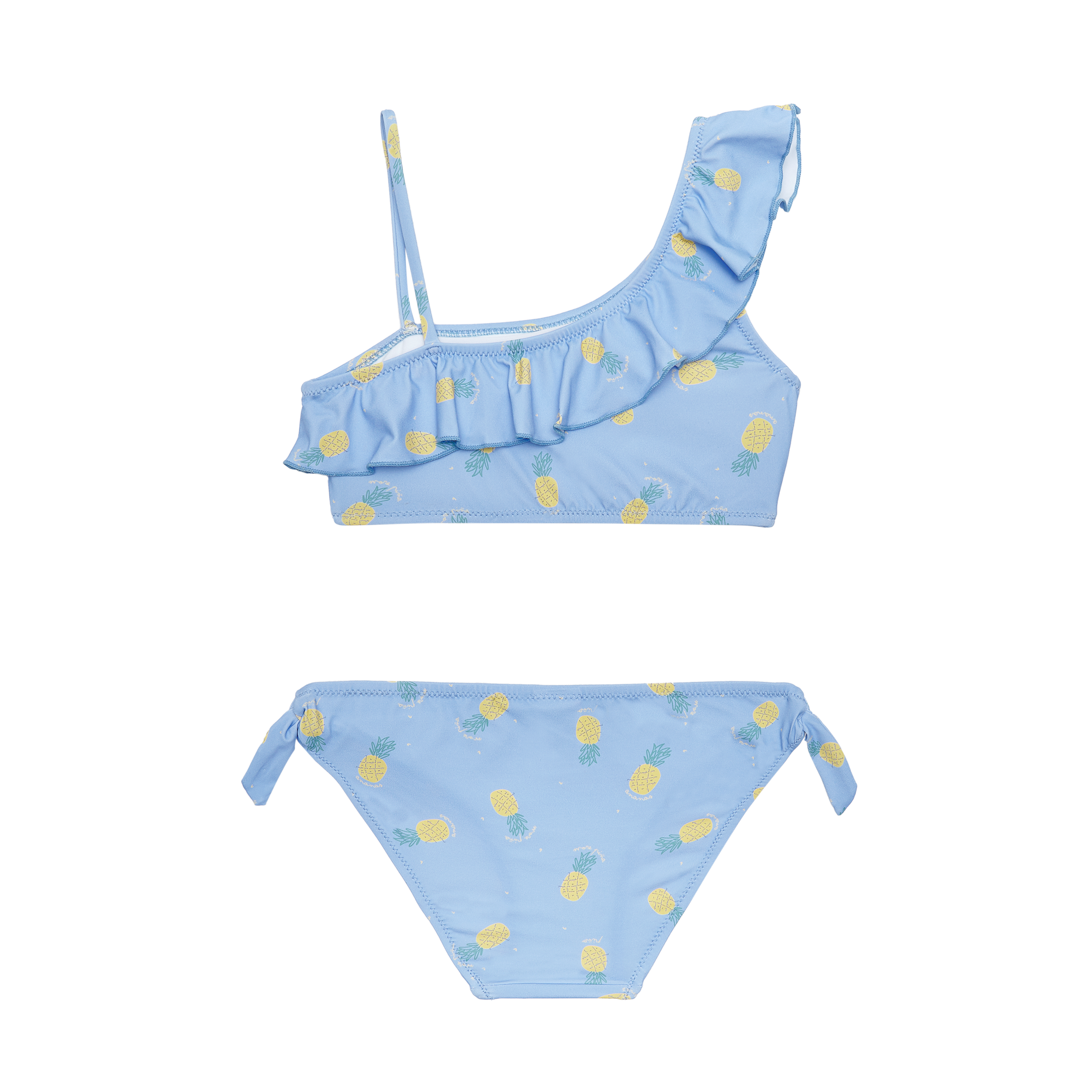 BIKINI DOS PIEZAS. TOP ESCOTE ASIMÉTRICO CON VOLANTE Y COPA EXTRAÍBLE A PARTIR DE LA TALLA 10 AÑOS, SIN AROS.