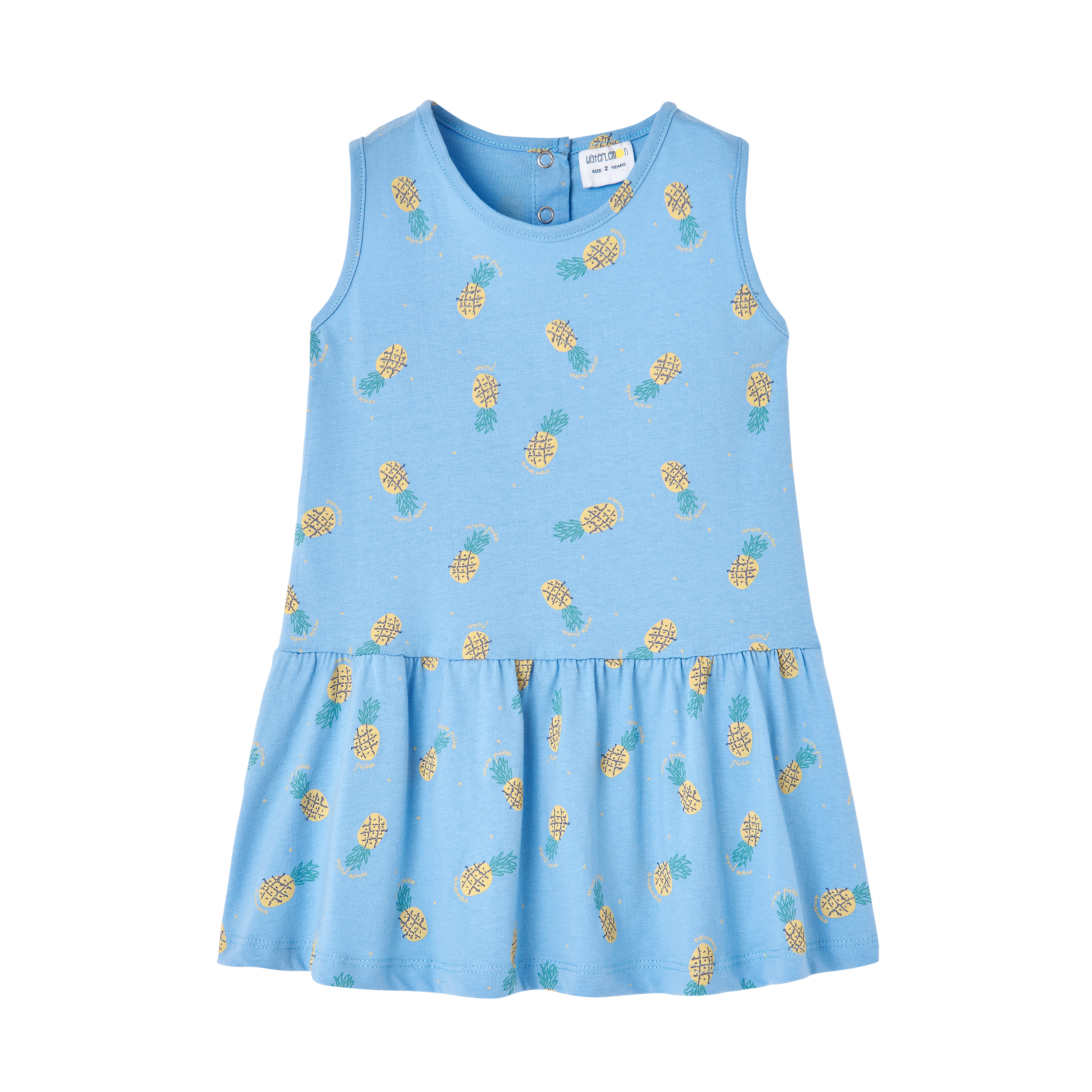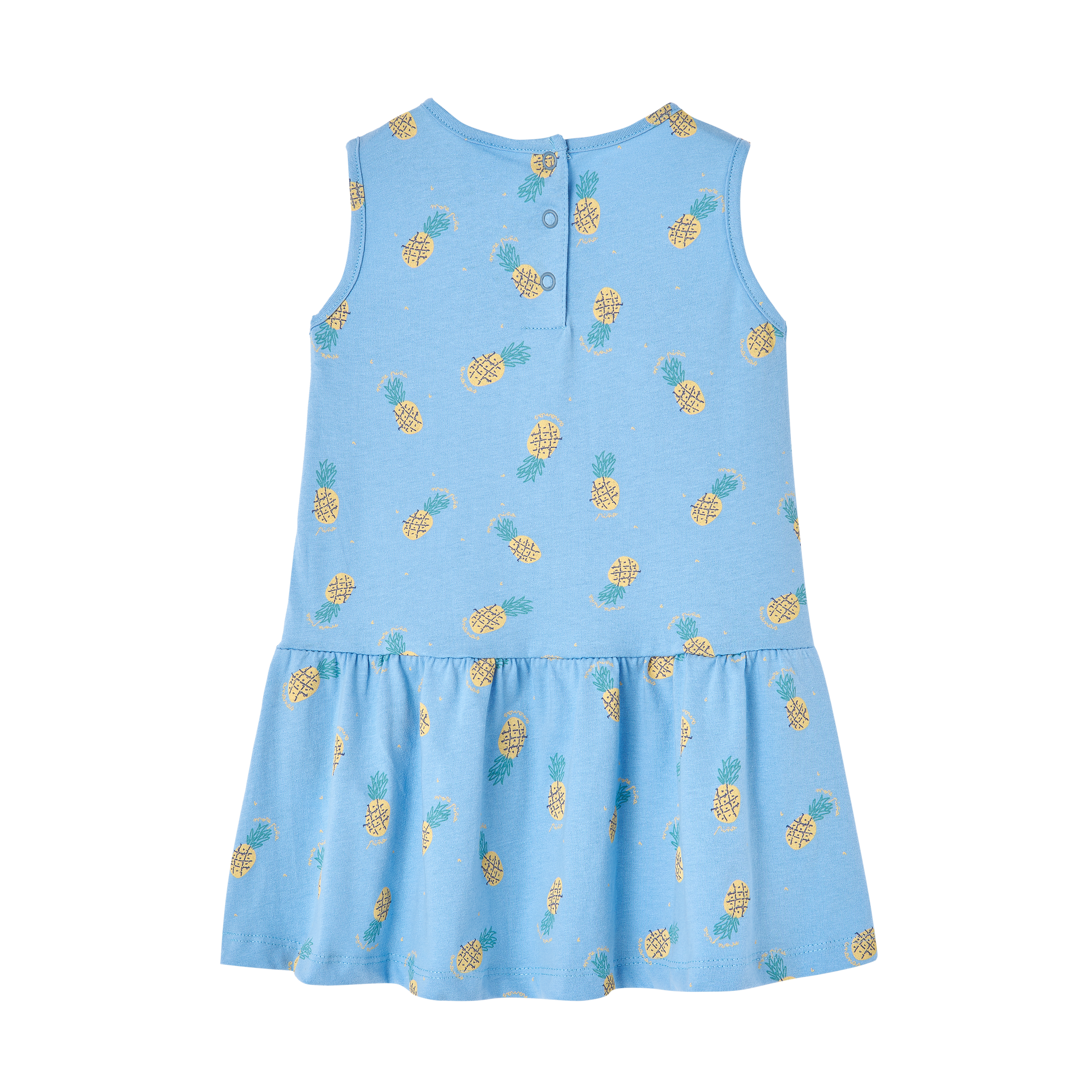 ESTAMPADO DE PIÑAS CON FONDO AZUL CLARO.