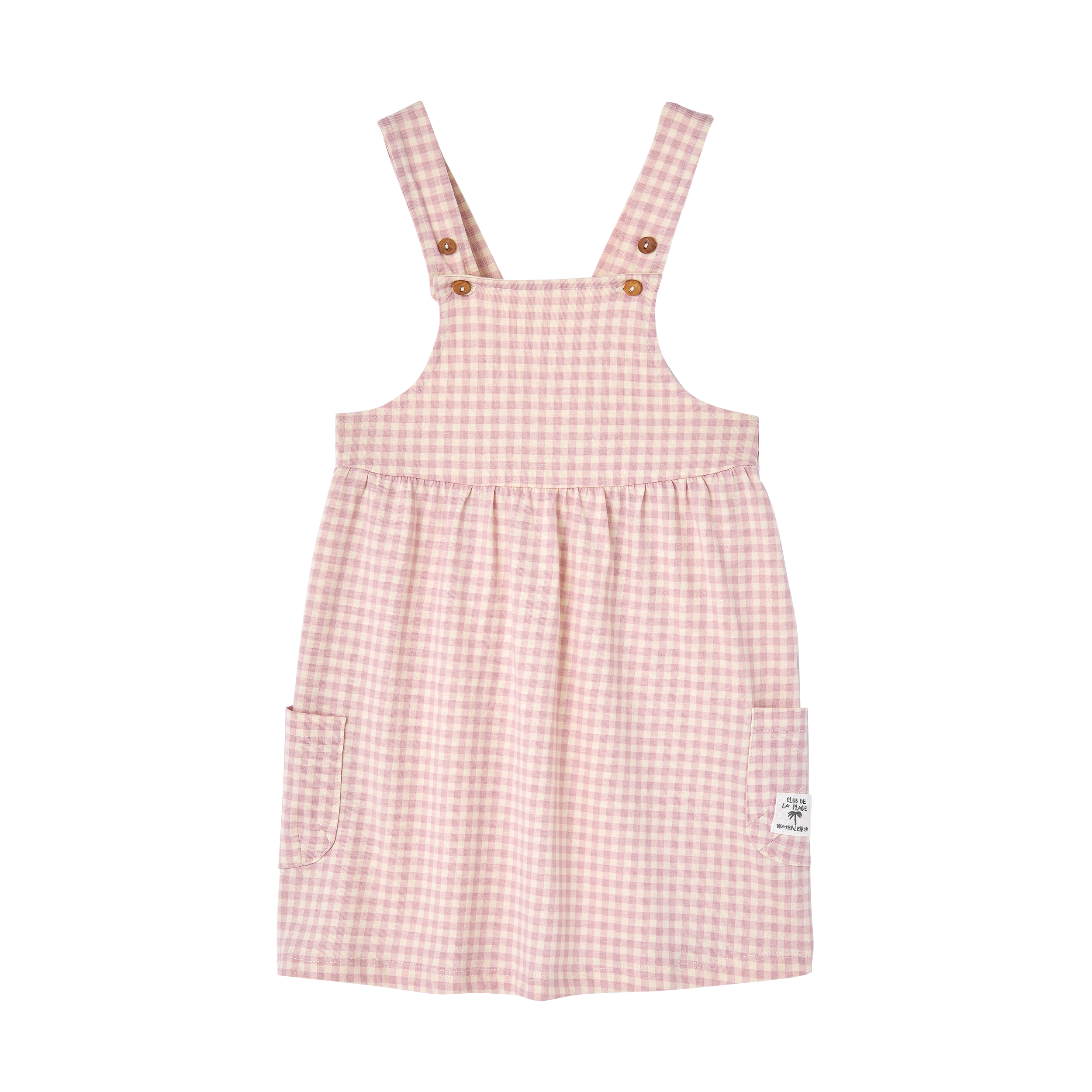 VESTIDO ESCOTE RECTO, TIRANTE ANCHO CON CIERRE BOTÓN, CINTURILLA CON GOMA Y BOLSILLOS EN LOS LATERALES.