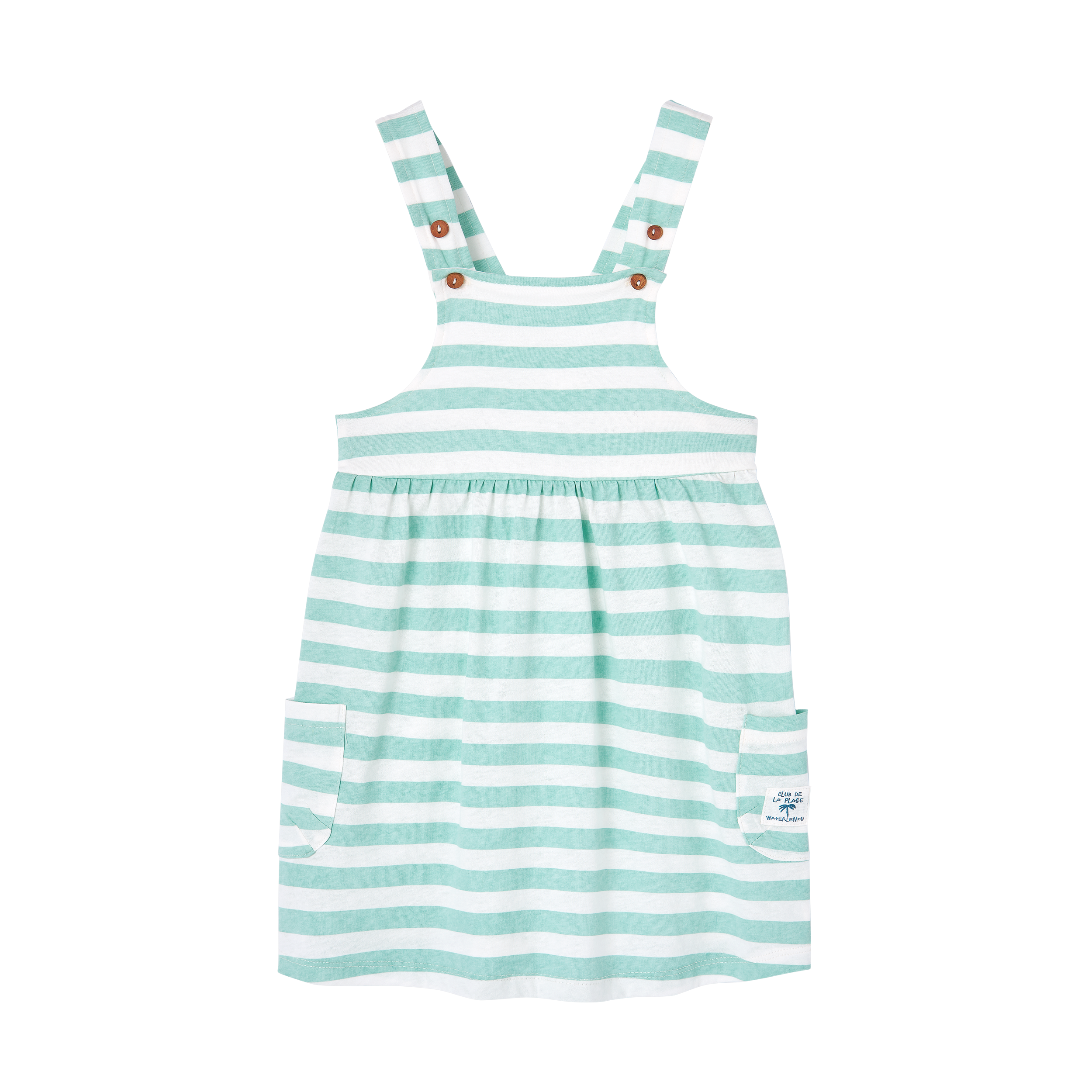 VESTIDO ESCOTE RECTO, TIRANTE ANCHO CON CIERRE BOTÓN, CINTURILLA CON GOMA Y BOLSILLOS EN LOS LATERALES .
